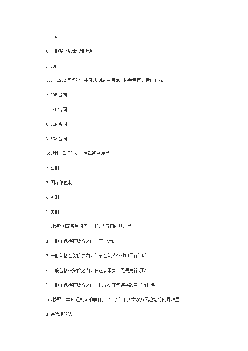 【文档名称】 2018跟单员考试基础理论真题(Word版).doc