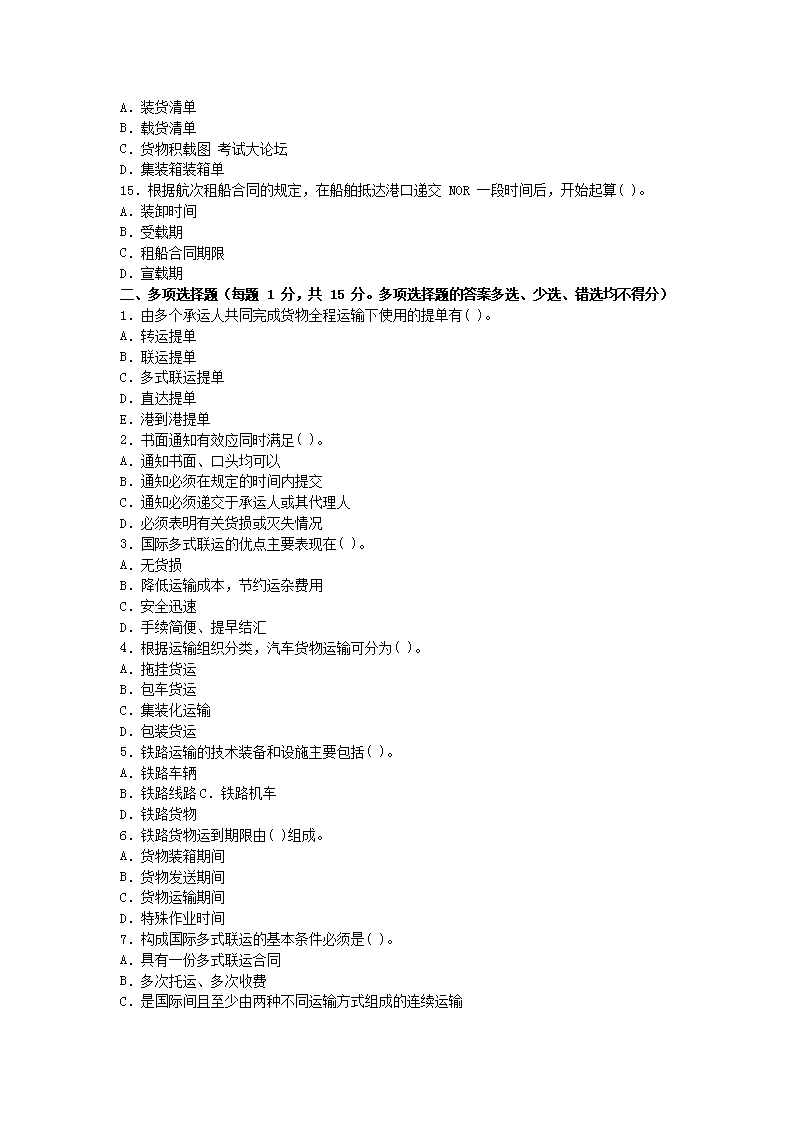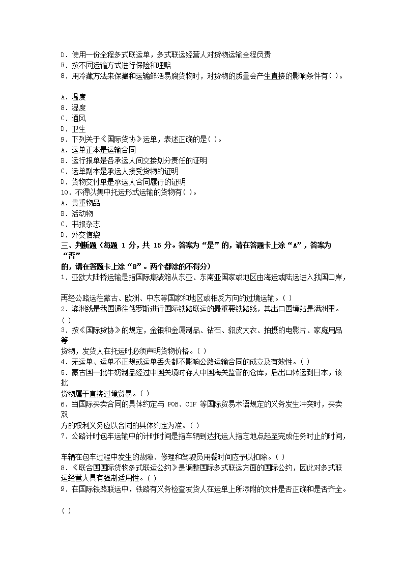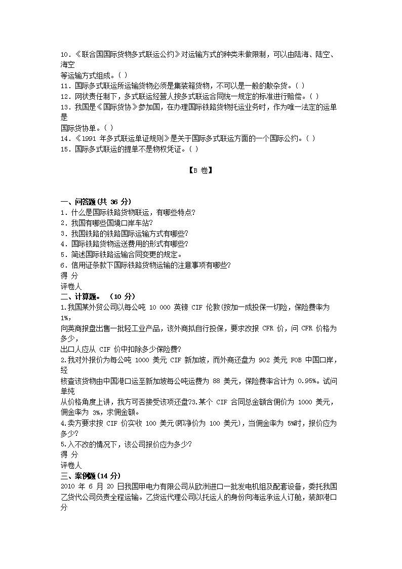 【文档名称】 2012国际货运代理考试业务真题(Word版).doc