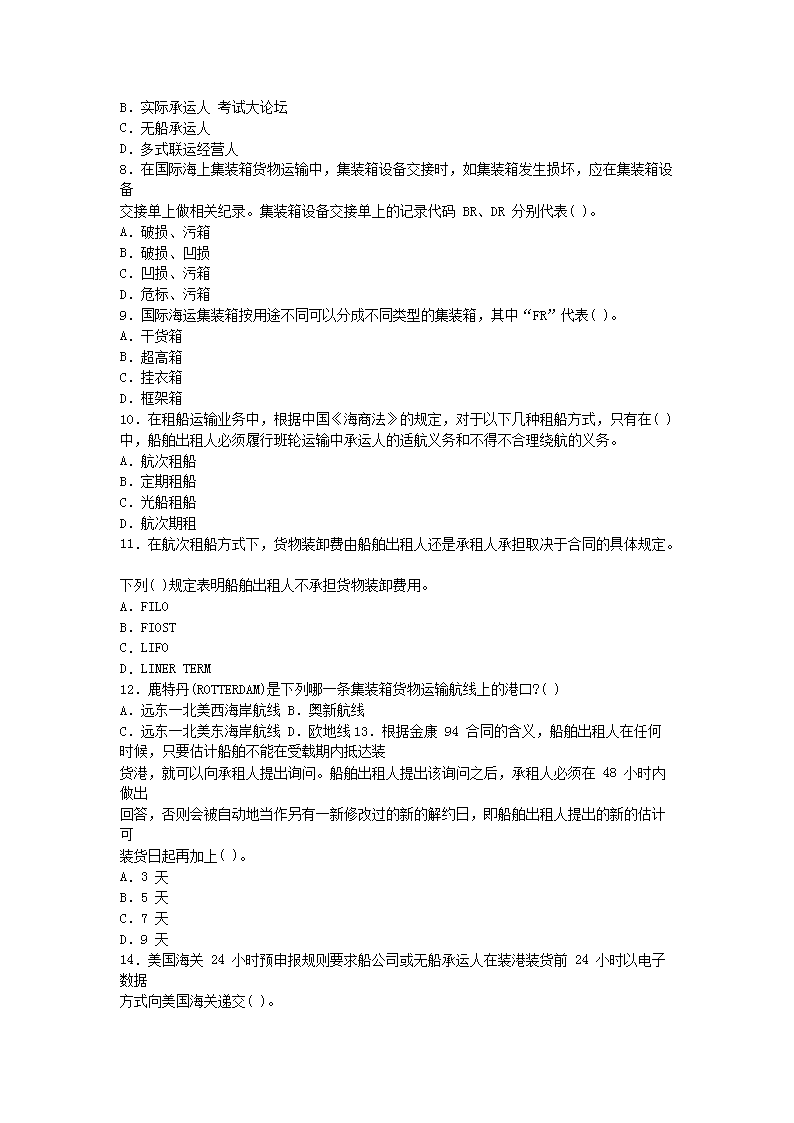 【文档预览】 无忧考网整理发布2012国际货运代理考试业务真题(Word版),前五页预览如下: