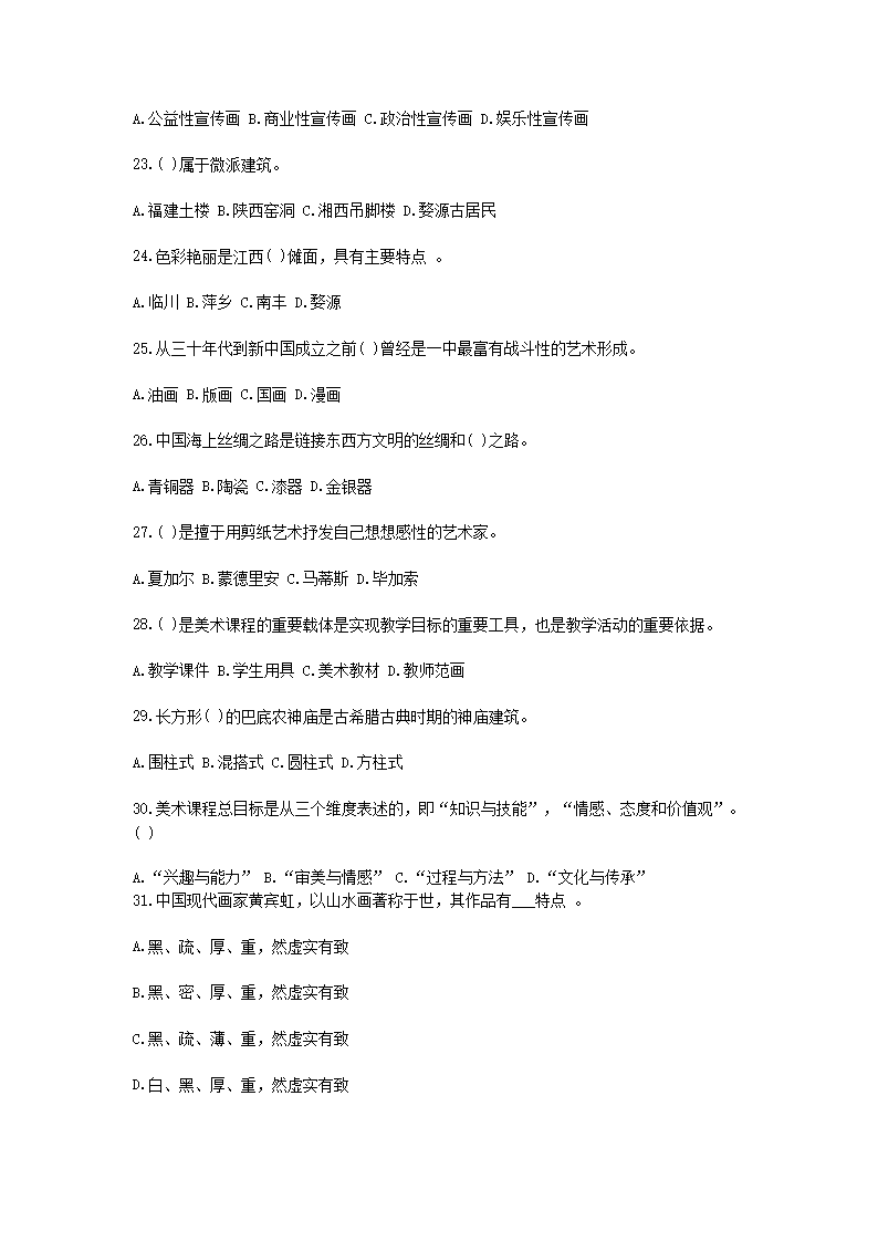 【文档名称】 2017江西教师招聘考试小学美术真题及答案(Word版).doc