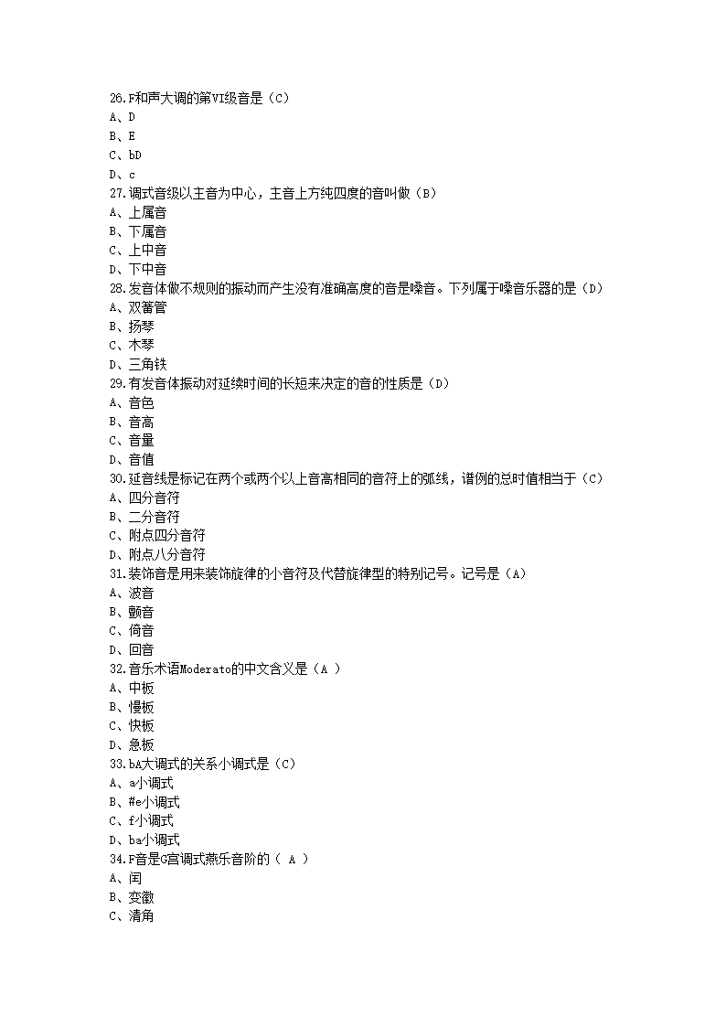 【文档名称】 2013江西教师招聘考试小学音乐真题及答案(Word版).doc
