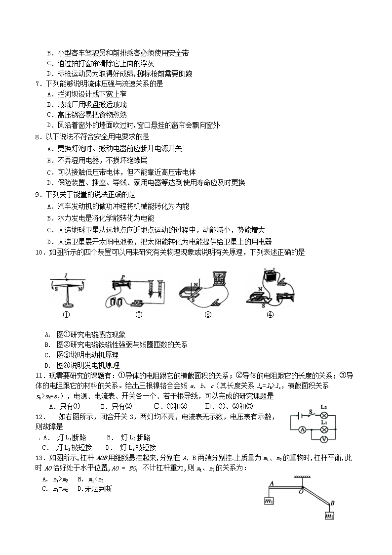 【文档名称】 2016年四川乐山中考物理真题及答案(Word版).doc