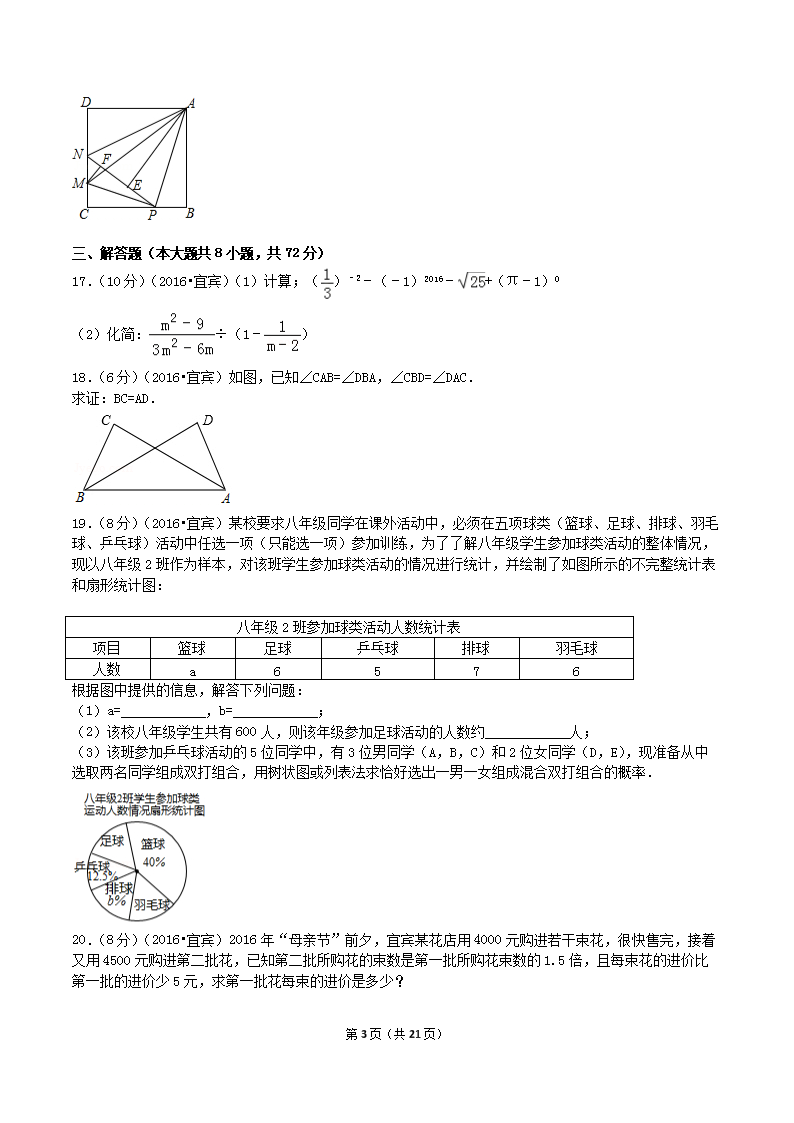 【文档预览】 无忧考网整理发布2016年四川省宜宾市中考数学真题及答案(Word版),前五页预览如下: