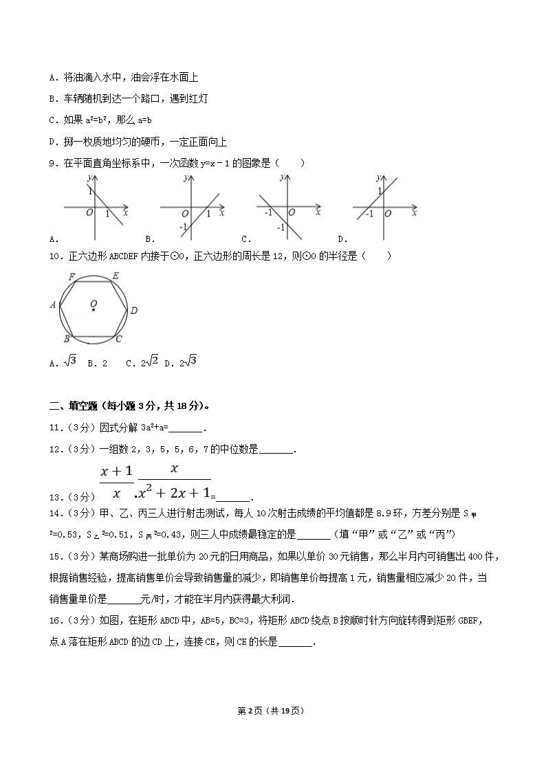 【文档名称】 2017年辽宁省沈阳市中考数学真题及答案(Word版).doc