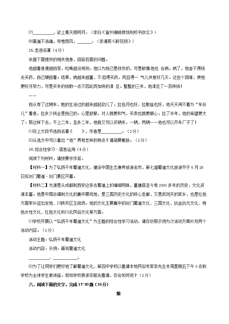 【文档名称】 2017年四川省广元市中考语文真题及答案(Word版).doc