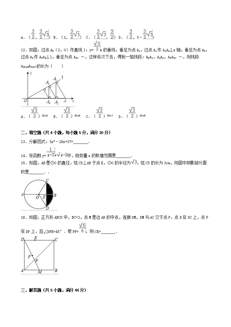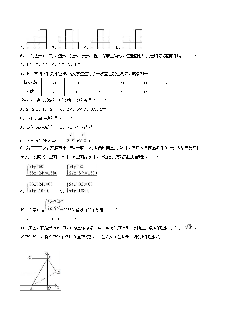 【文档名称】 2017年四川省内江市中考数学真题及答案(Word版).doc