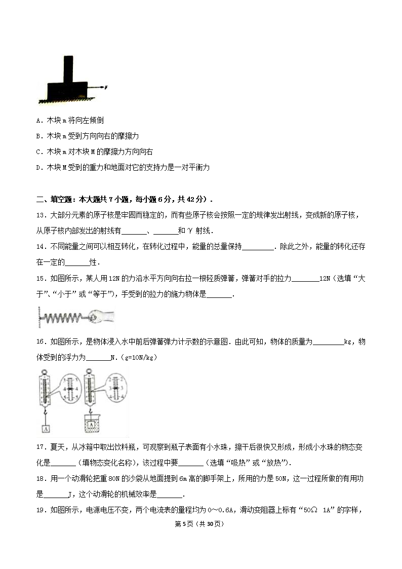【文档名称】 2017年四川省内江市中考物理真题及答案(Word版).doc