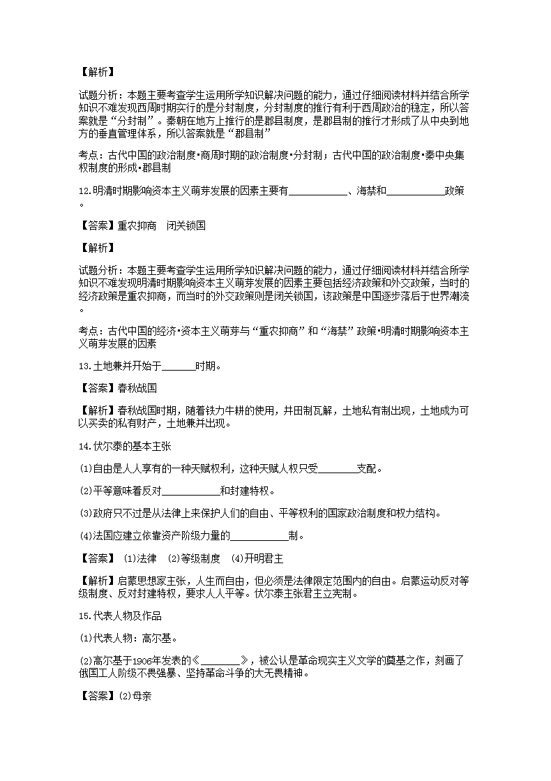 【文档名称】 2018-2019年山西高二水平会考历史真题及答案(Word版).doc