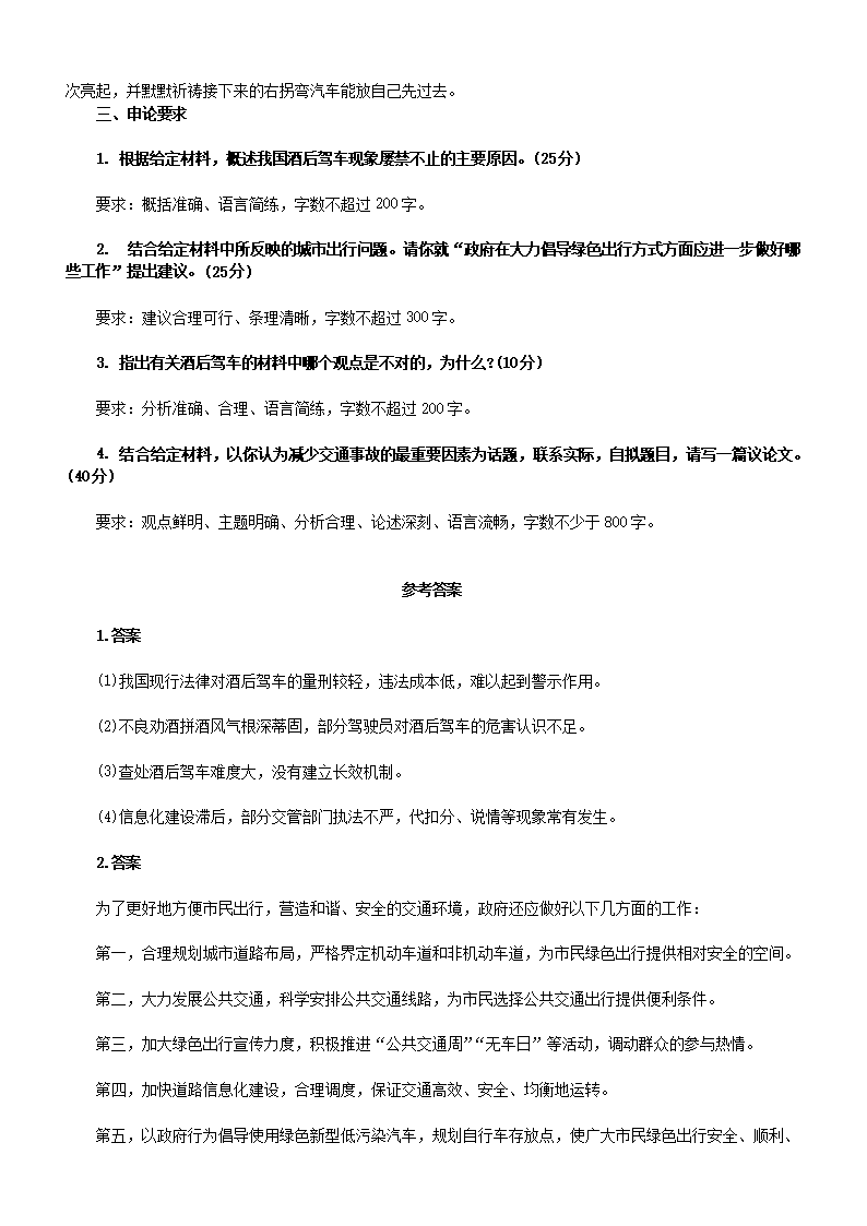 【文档名称】 2009下半年北京公务员申论考试真题及答案(Word版).doc