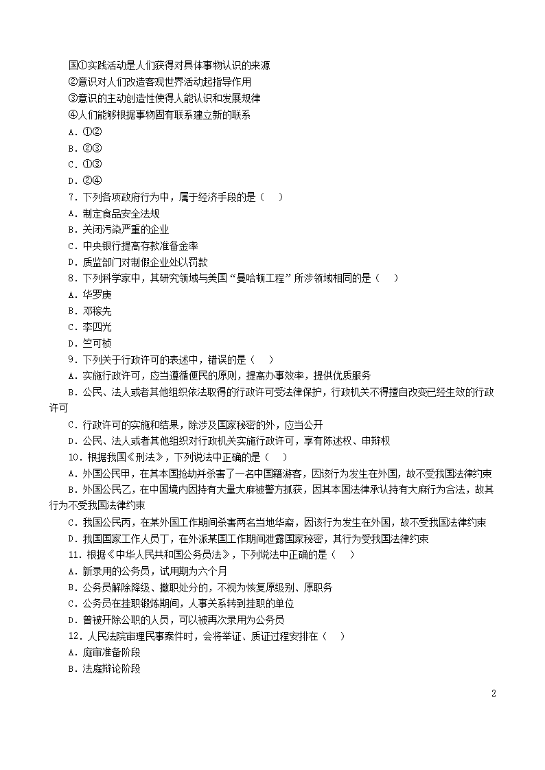 【文档名称】 2018年北京公务员行测考试真题及答案(Word版).doc