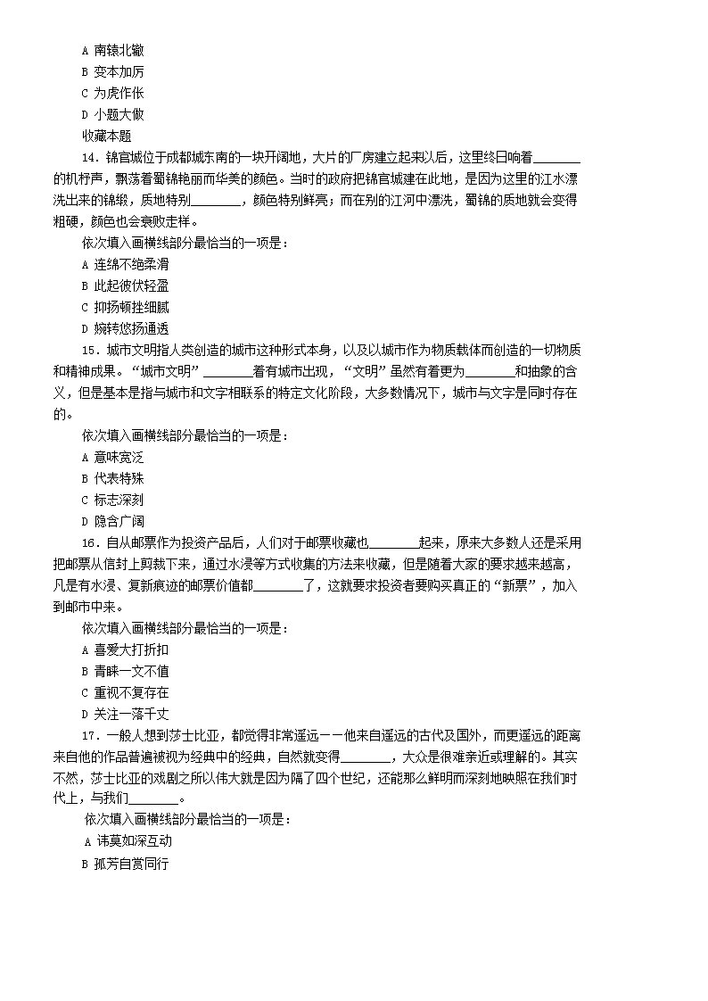 【文档名称】 2016下半年四川公务员考试行测真题及答案(Word版).doc