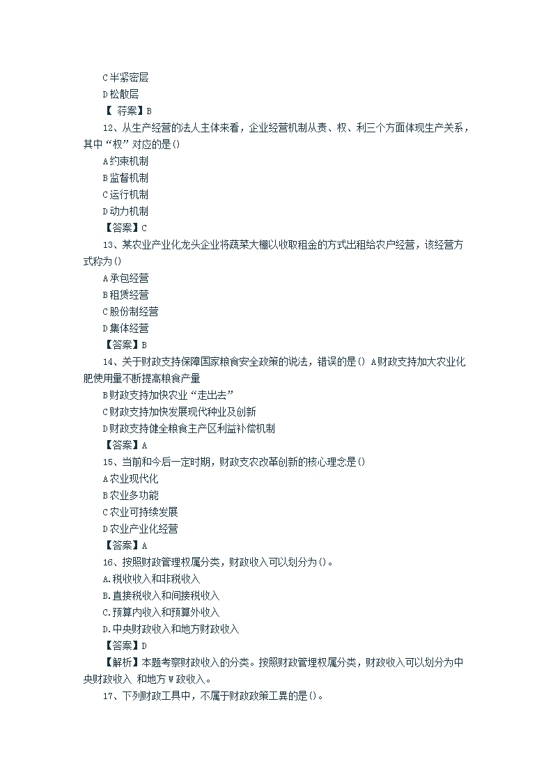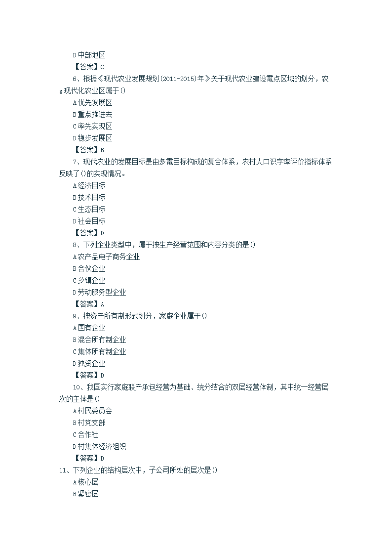 【文档名称】 2015年中级经济师农业考试真题及答案(Word版).doc