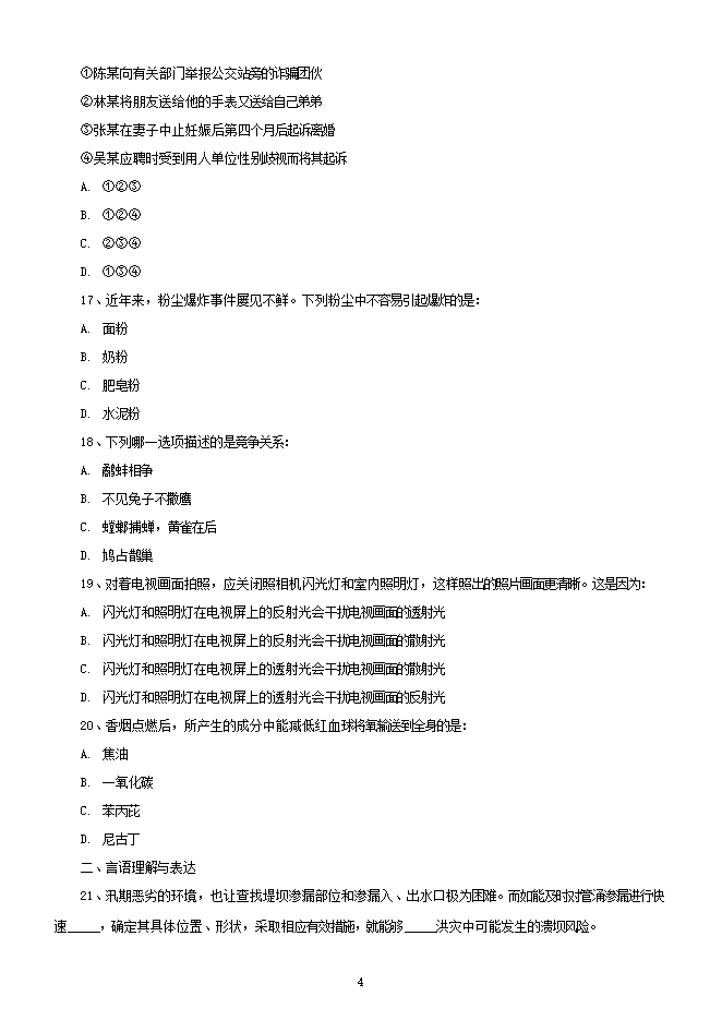 【文档名称】 2017年湖北公务员行测考试真题及答案(Word版).doc