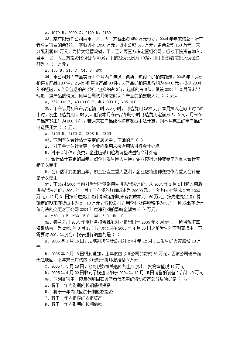 【文档名称】 2005年注册税务师考试财务与会计考试真题(Word版).doc
