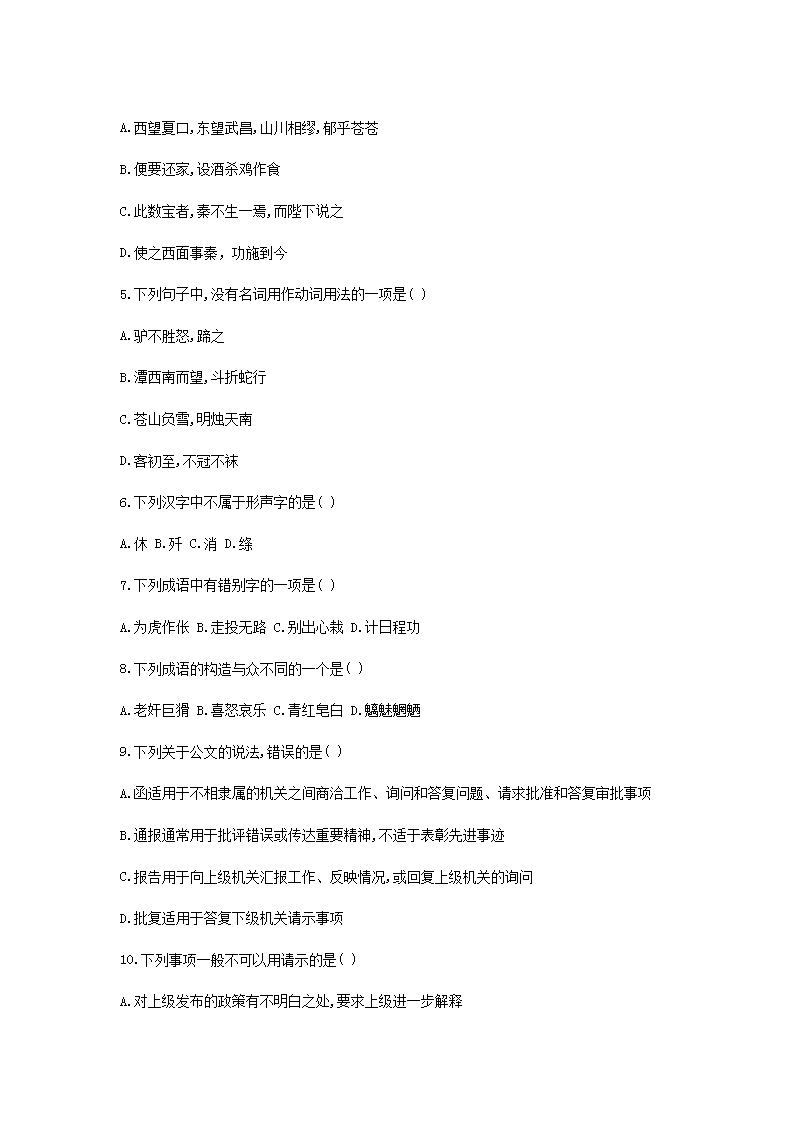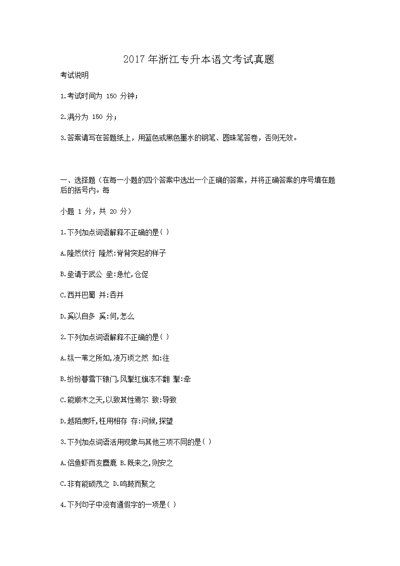 【文档名称】 2017年浙江专升本语文考试真题(Word版).doc