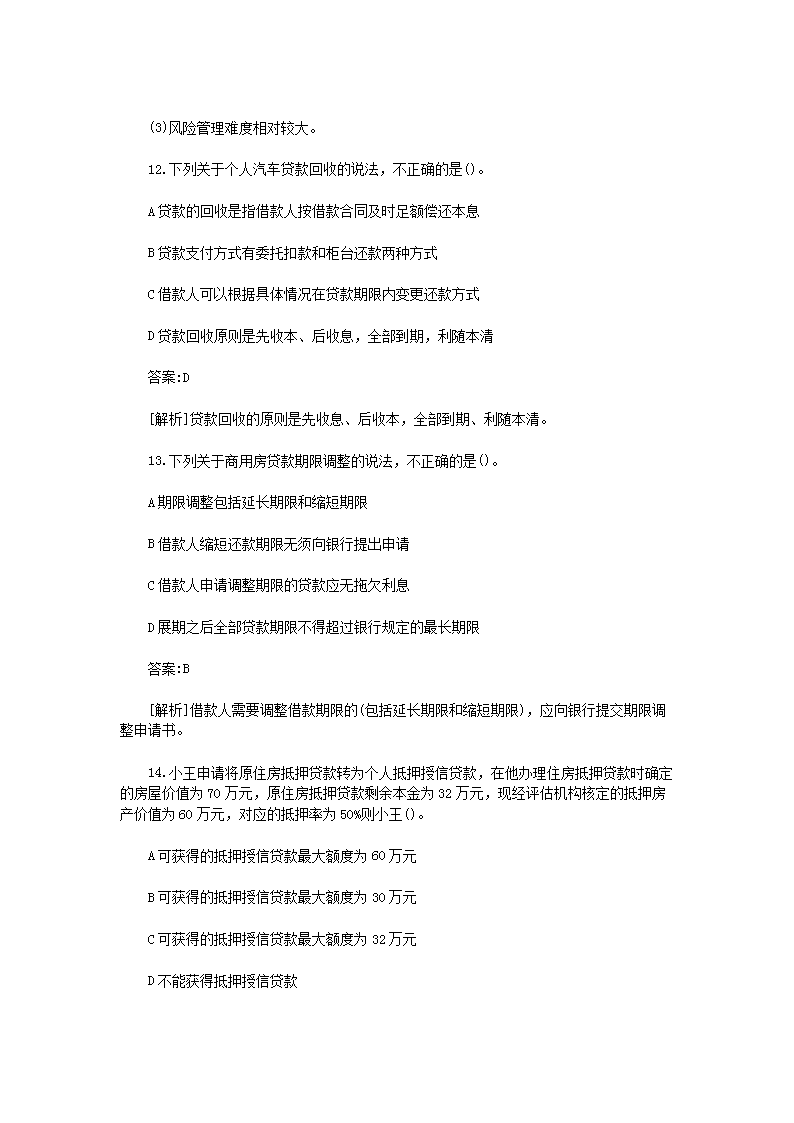 【文档名称】 2009上半年银行从业资格考试个人贷款真题及答案(Word版).doc