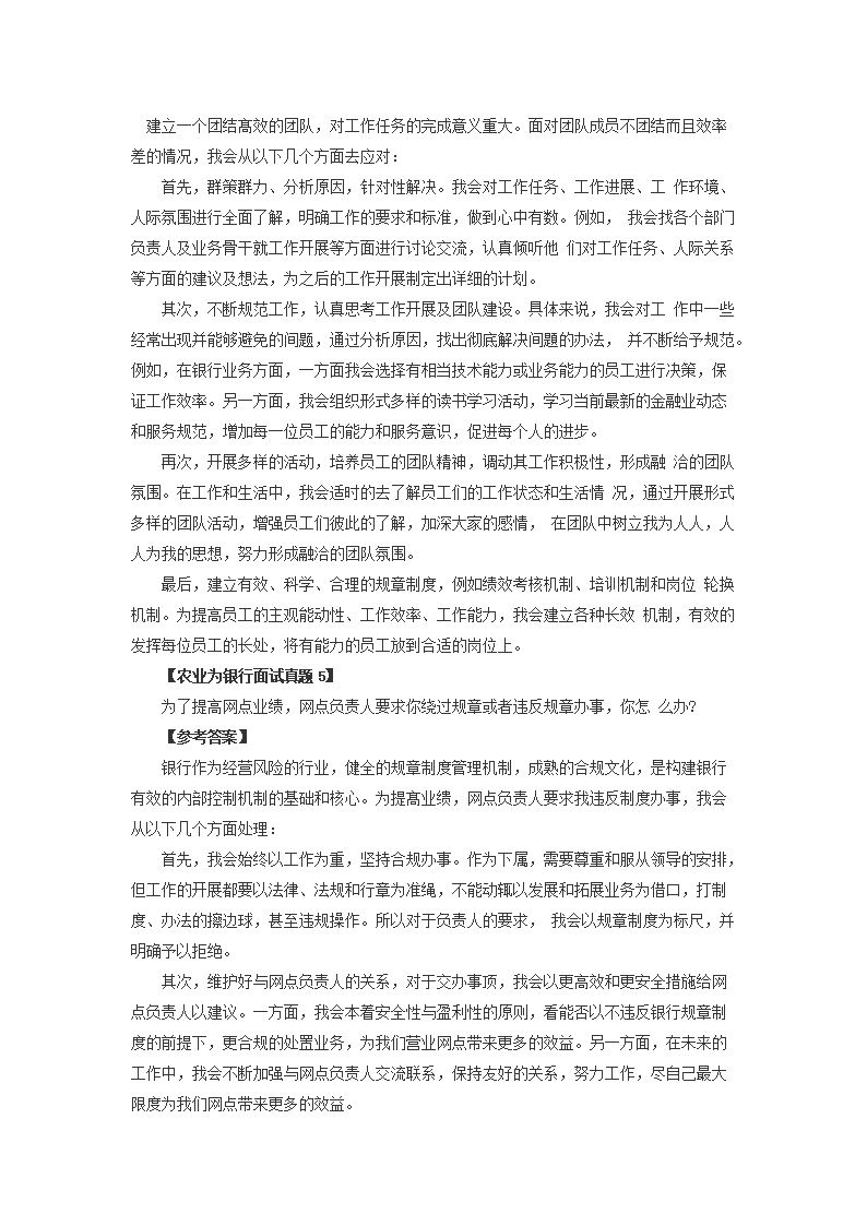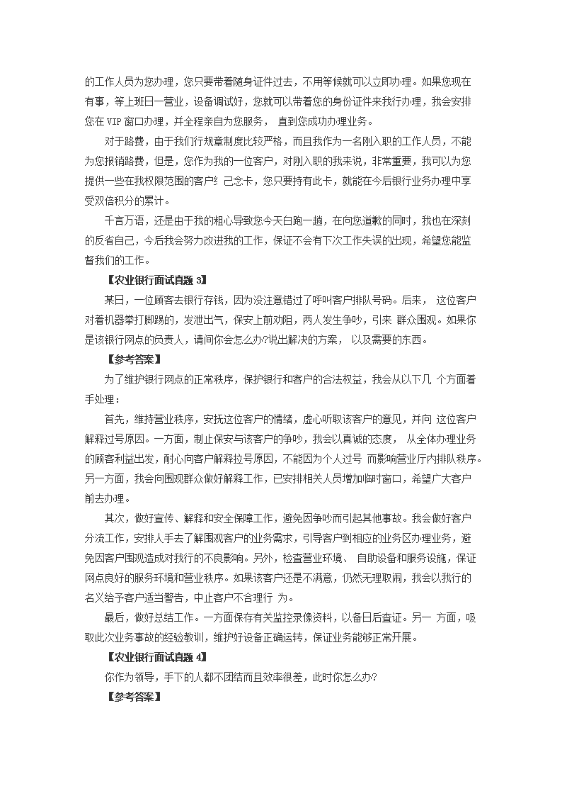【文档预览】 无忧考网整理发布2017年中国农业银行秋季招聘面试真题及参考答案(Word版),前五页预览如下: