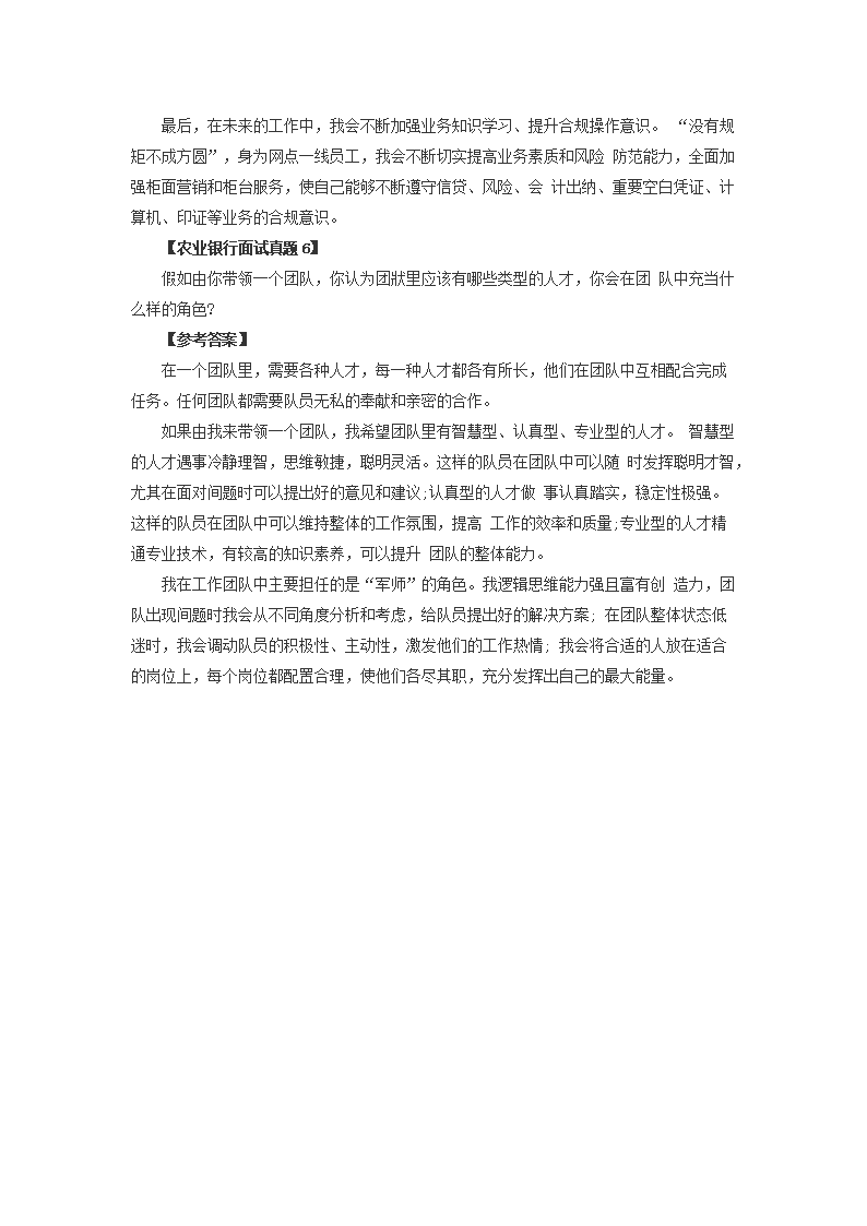 【文档名称】 2017年中国农业银行秋季招聘面试真题及参考答案(Word版).doc