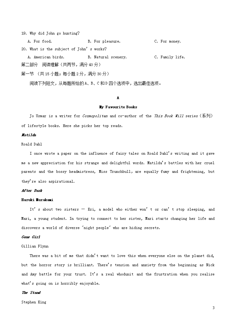 【文档名称】 2019年新疆高考英语真题及答案(Word版).doc