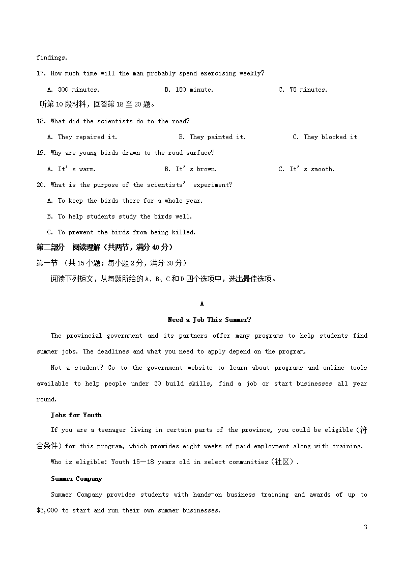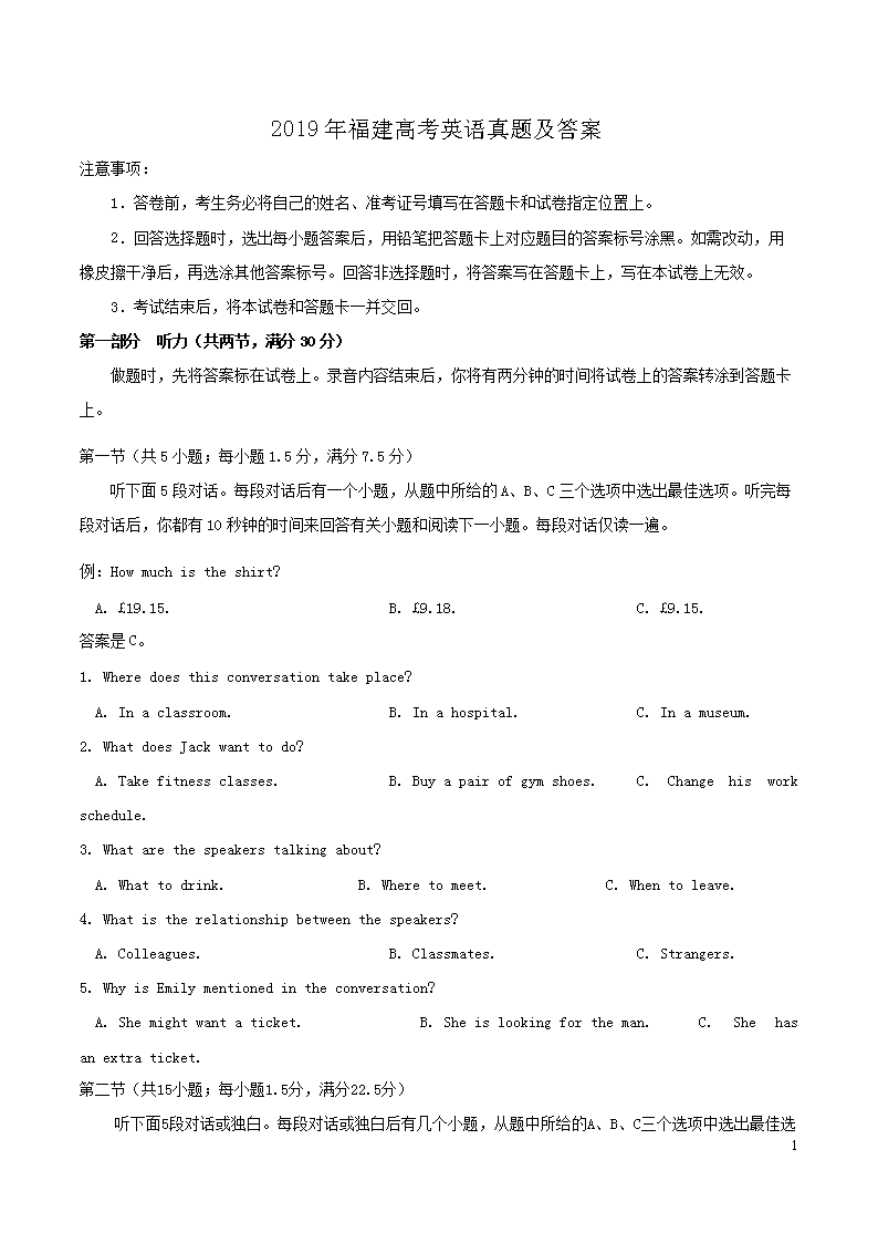【文档预览】 无忧考网整理发布2019年福建高考英语真题及答案(Word版),前五页预览如下: