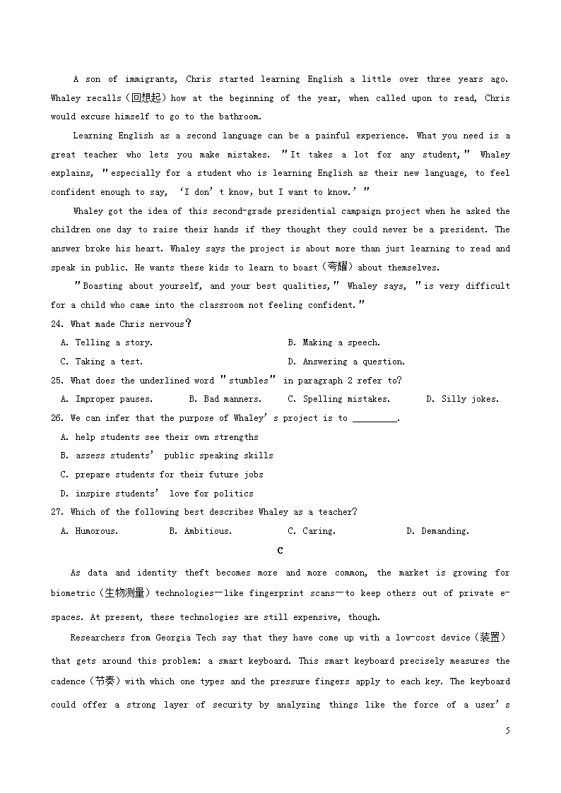 【文档名称】 2019年福建高考英语真题及答案(Word版).doc