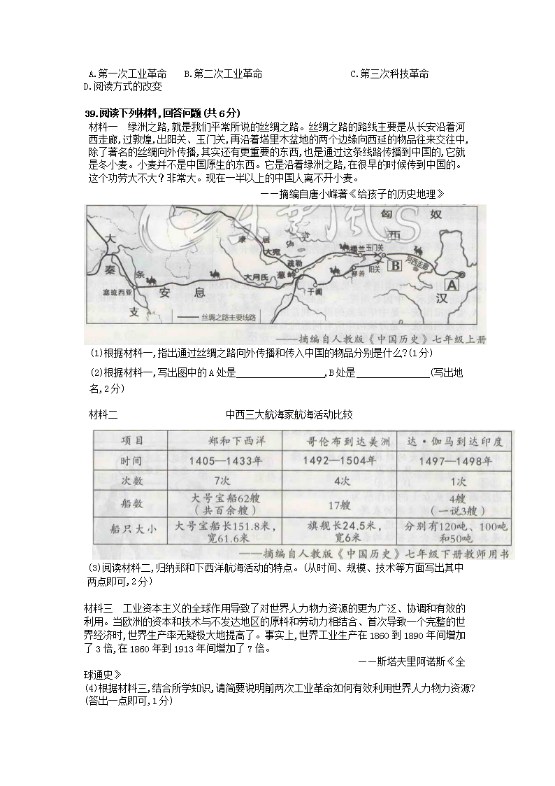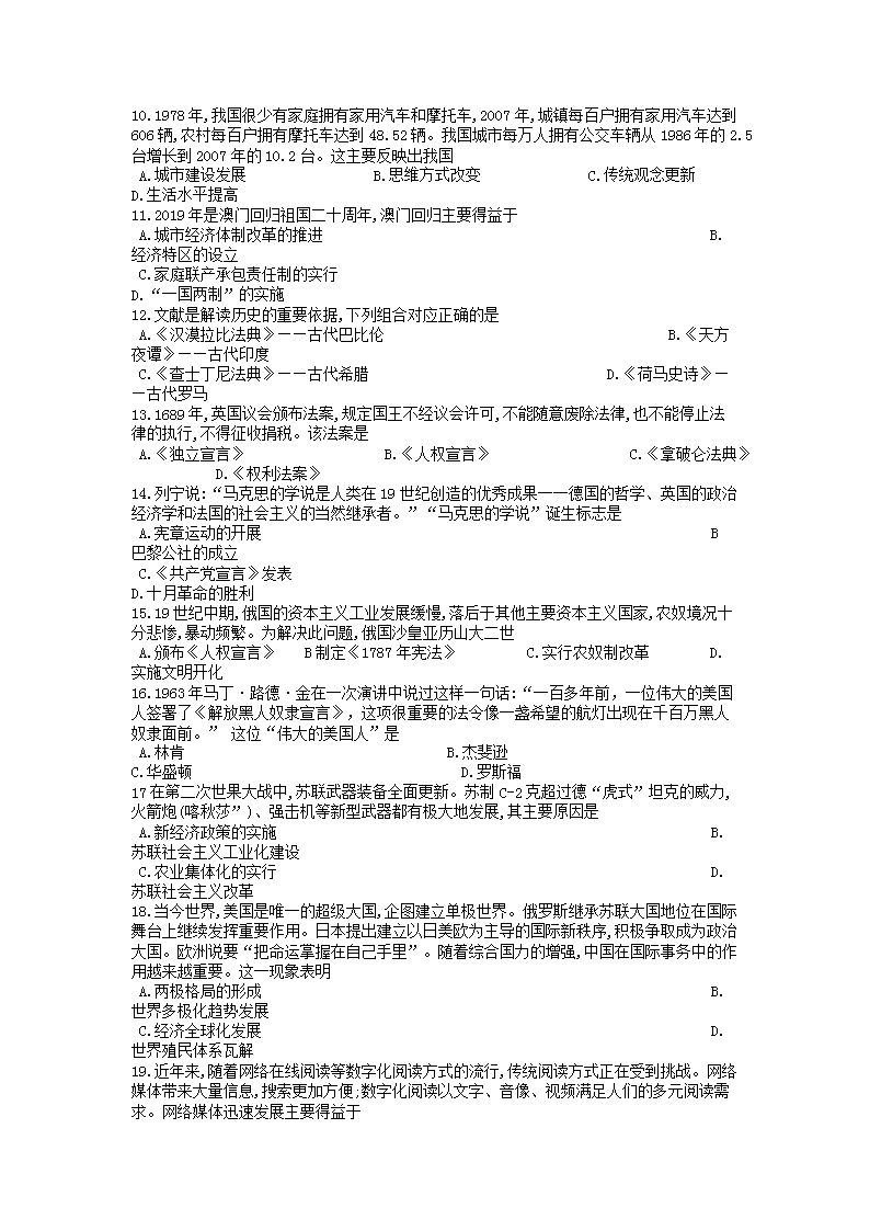 【文档名称】 2019湖北省黄石市中考历史真题及答案(Word版).doc