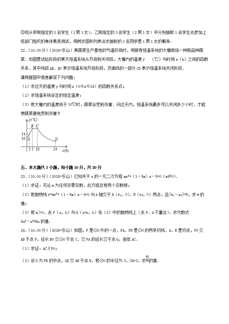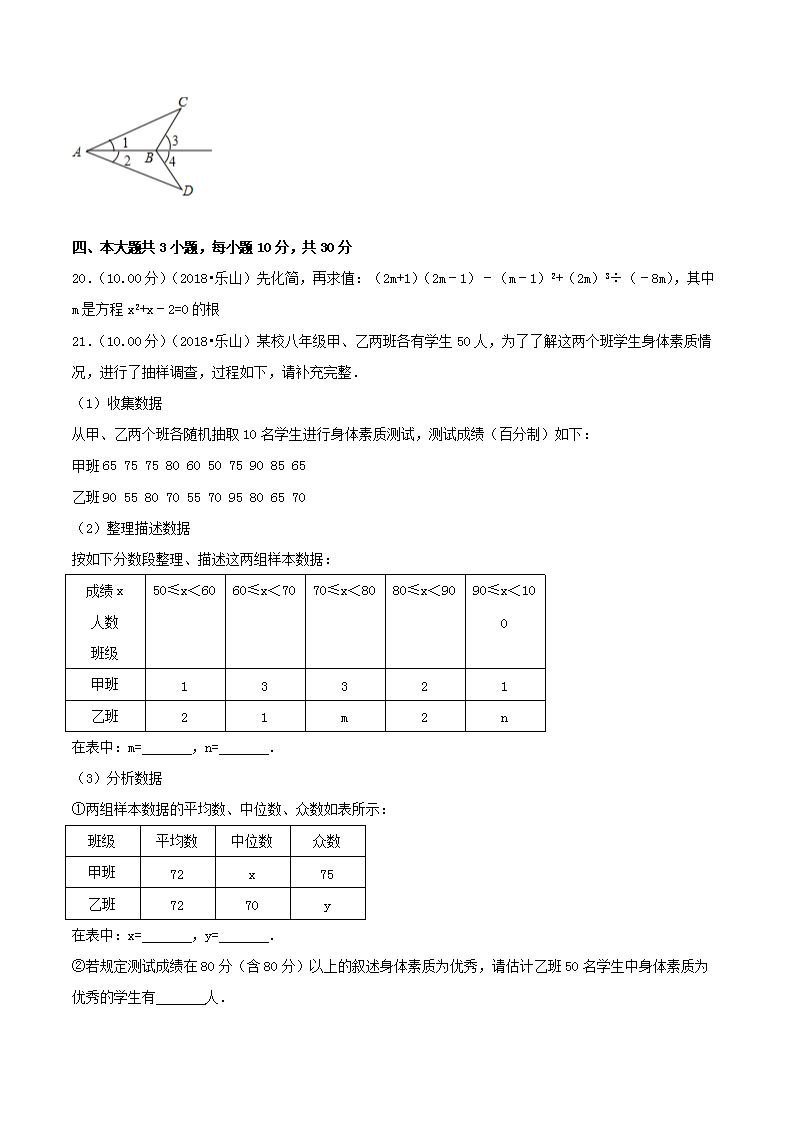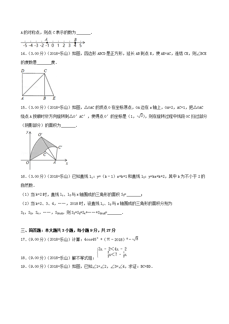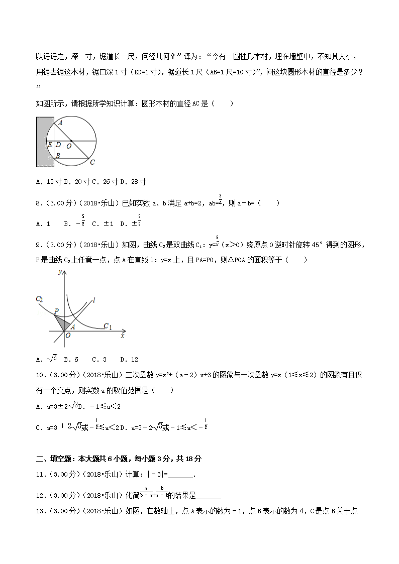 【文档名称】 2018年四川乐山市中考数学真题及答案(Word版).doc