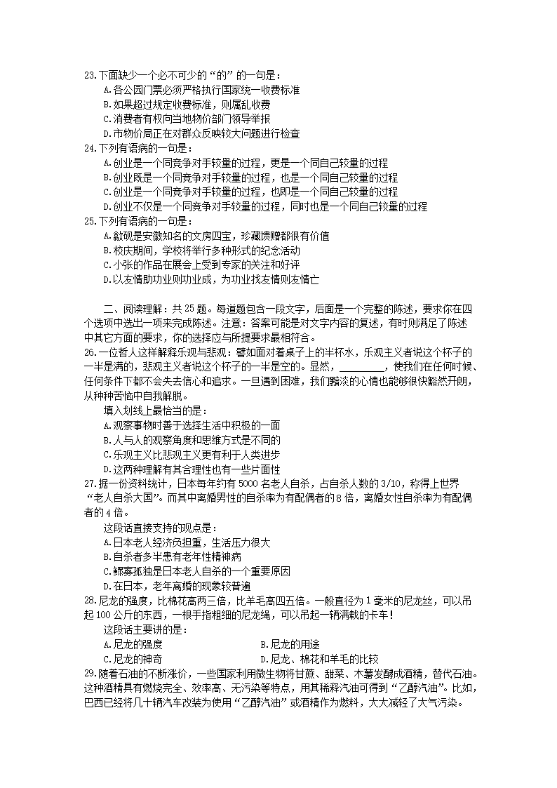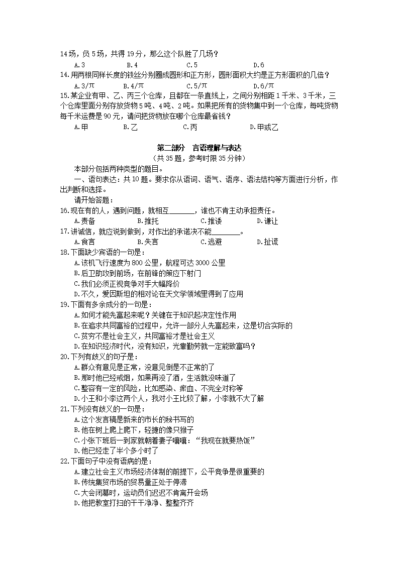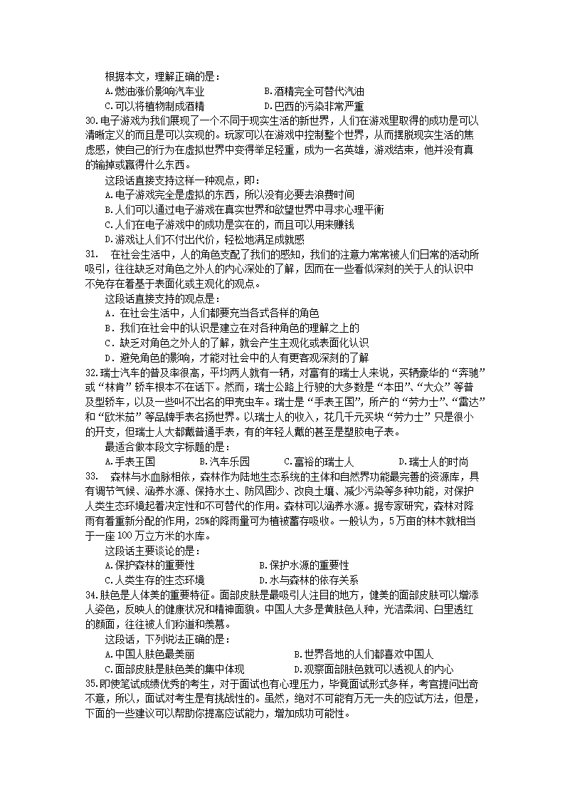 【文档名称】 2008安徽公务员行测考试真题及答案(Word版).doc