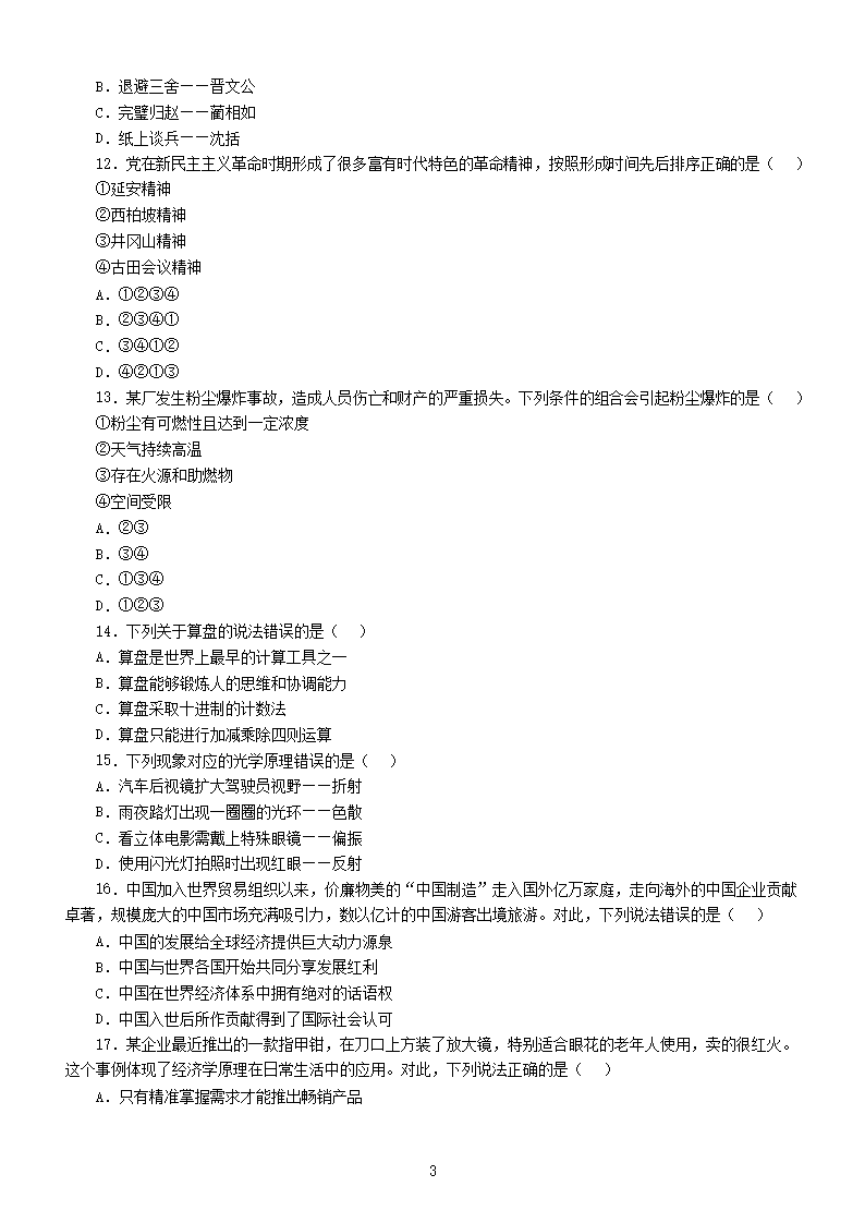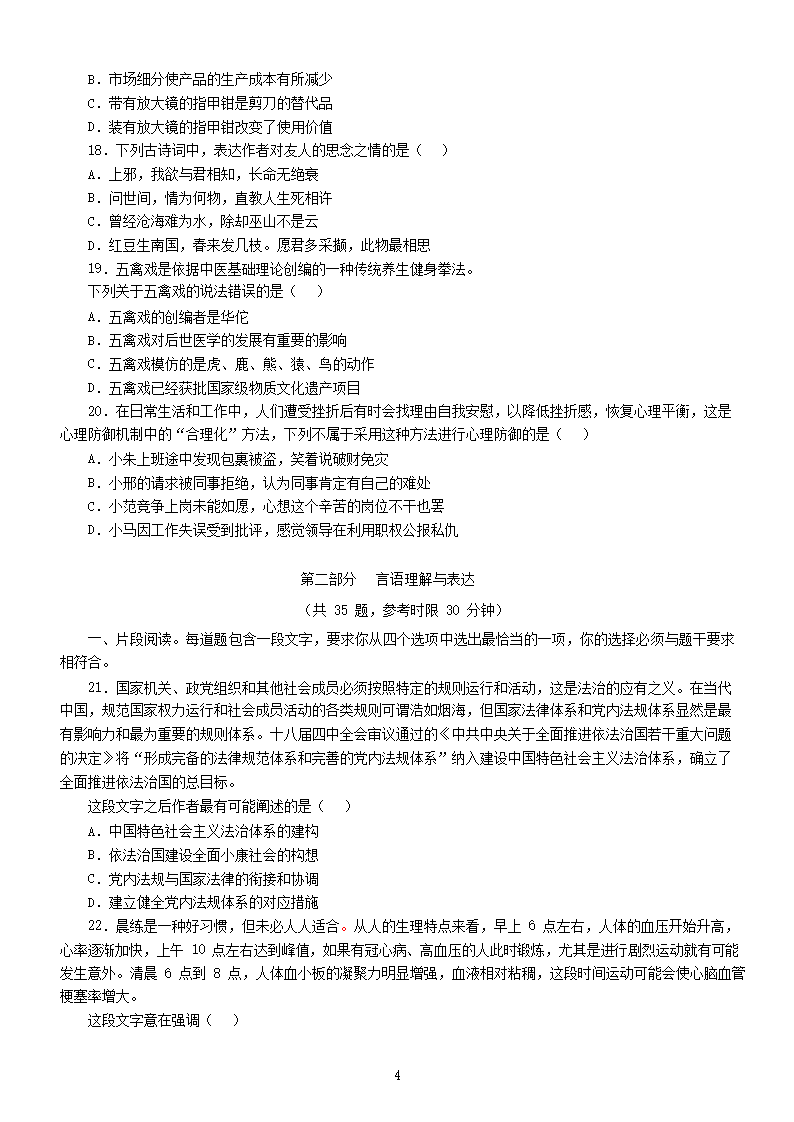 【文档名称】 2017年江苏公务员行测考试真题及答案C类(Word版).doc