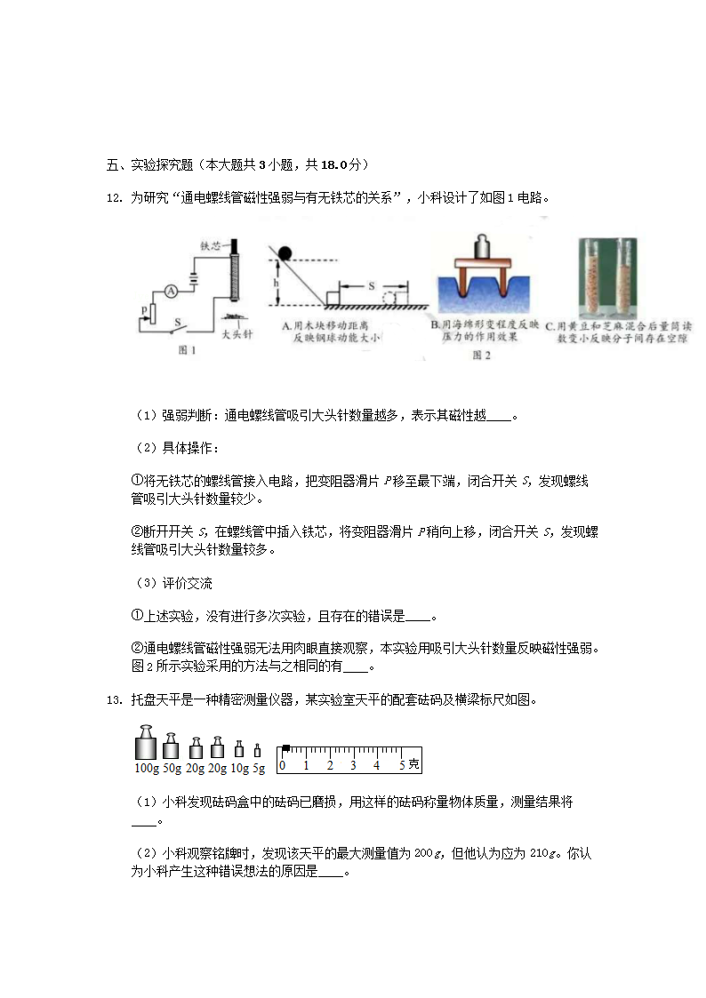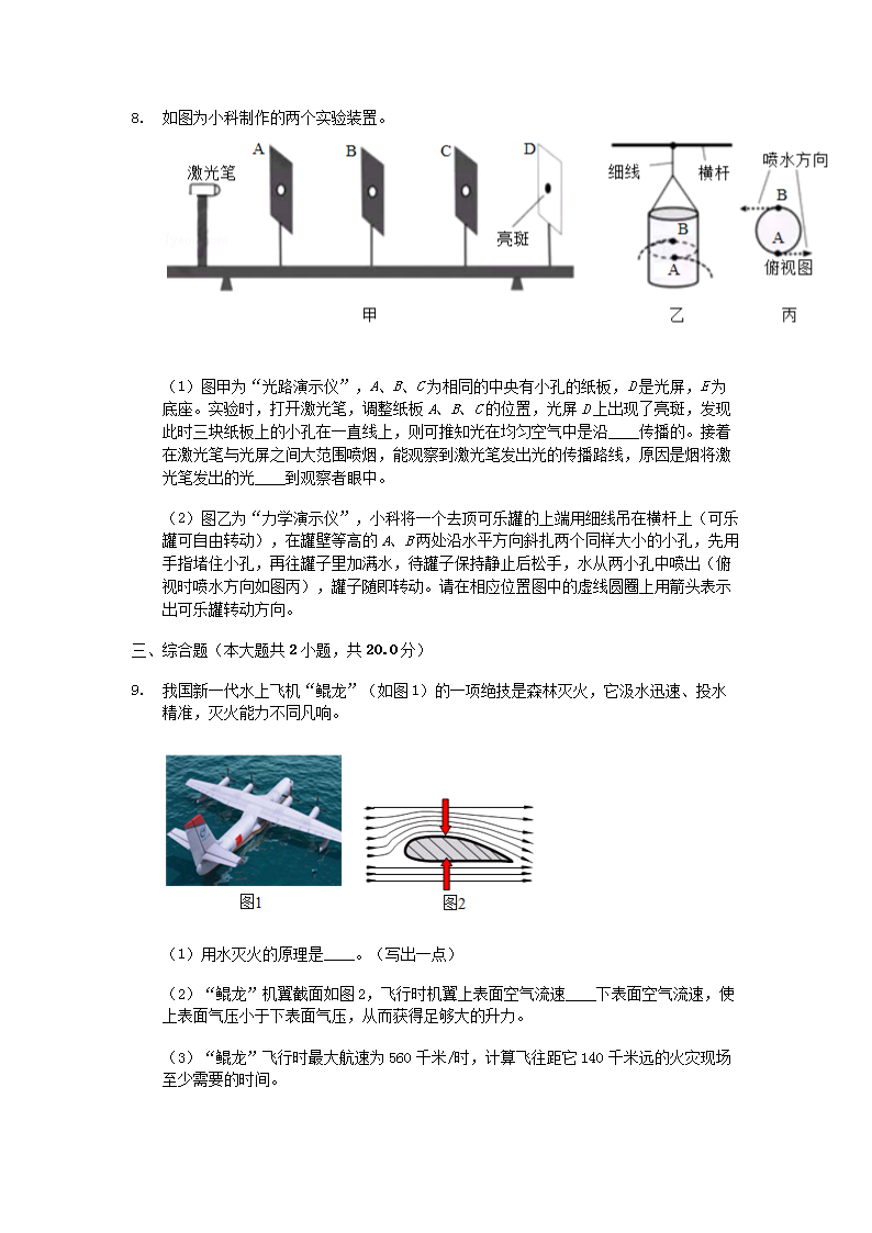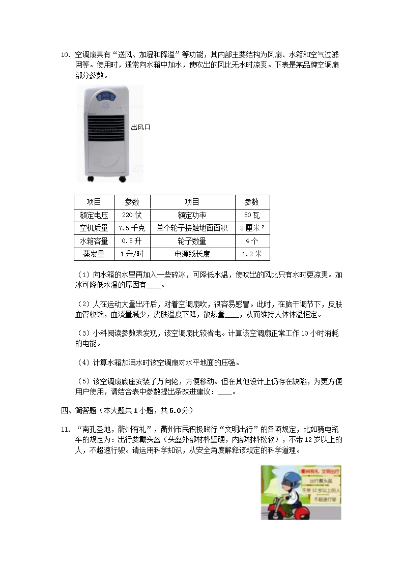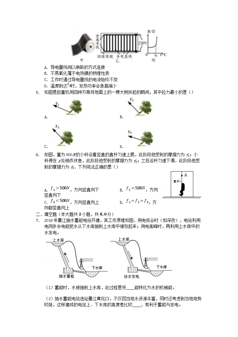 【文档名称】 2019年浙江省衢州市中考物理真题及答案(Word版).doc