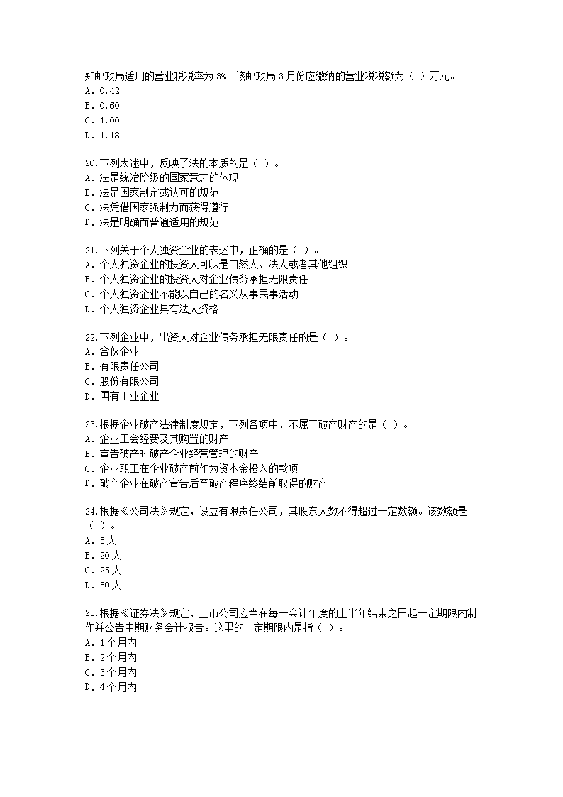 【文档名称】 2002年初级会计职称经济法基础真题及答案(Word版).doc