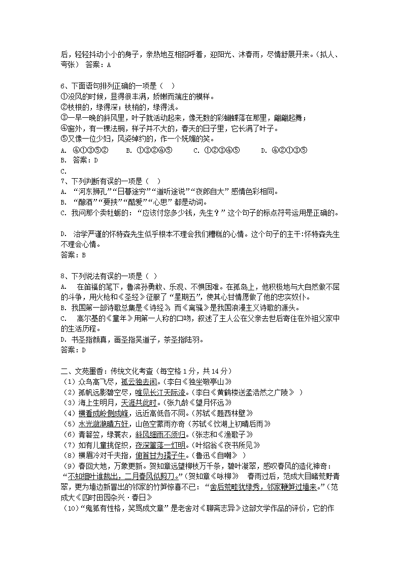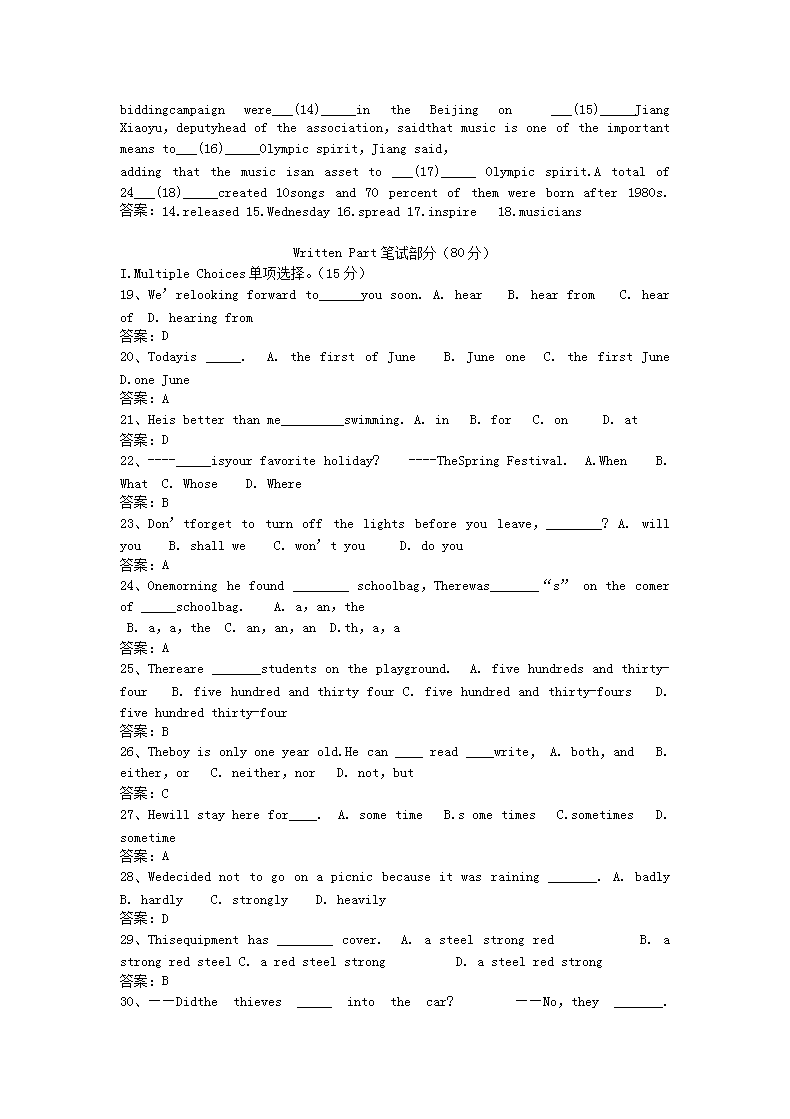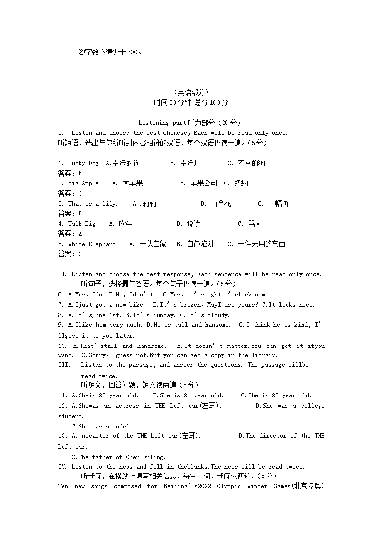 【文档预览】 无忧考网整理发布2015年百合外国语学校小升初考试文科综合真题及答案(Word版),前五页预览如下: