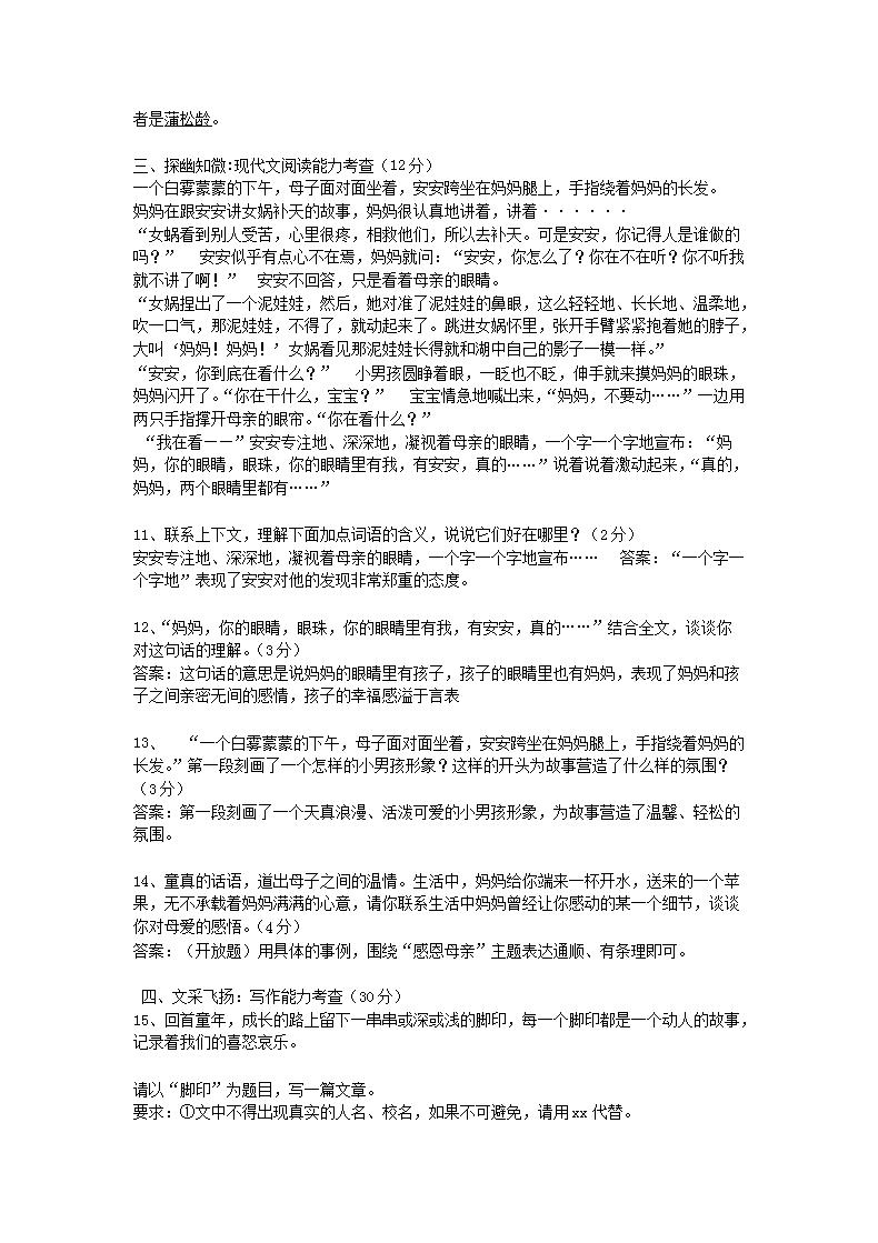 【文档名称】 2015年百合外国语学校小升初考试文科综合真题及答案(Word版).doc