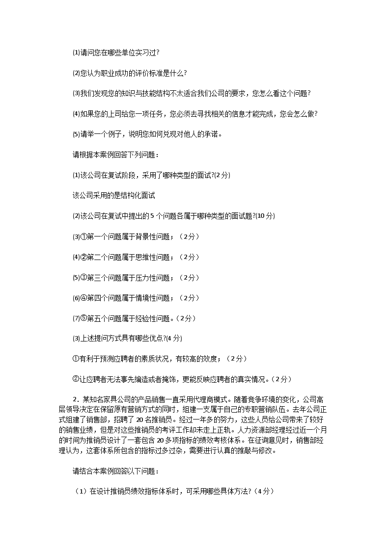 【文档预览】 无忧考网整理发布2011上半年人力资源管理师二级专业能力真题及答案(Word版),前五页预览如下: