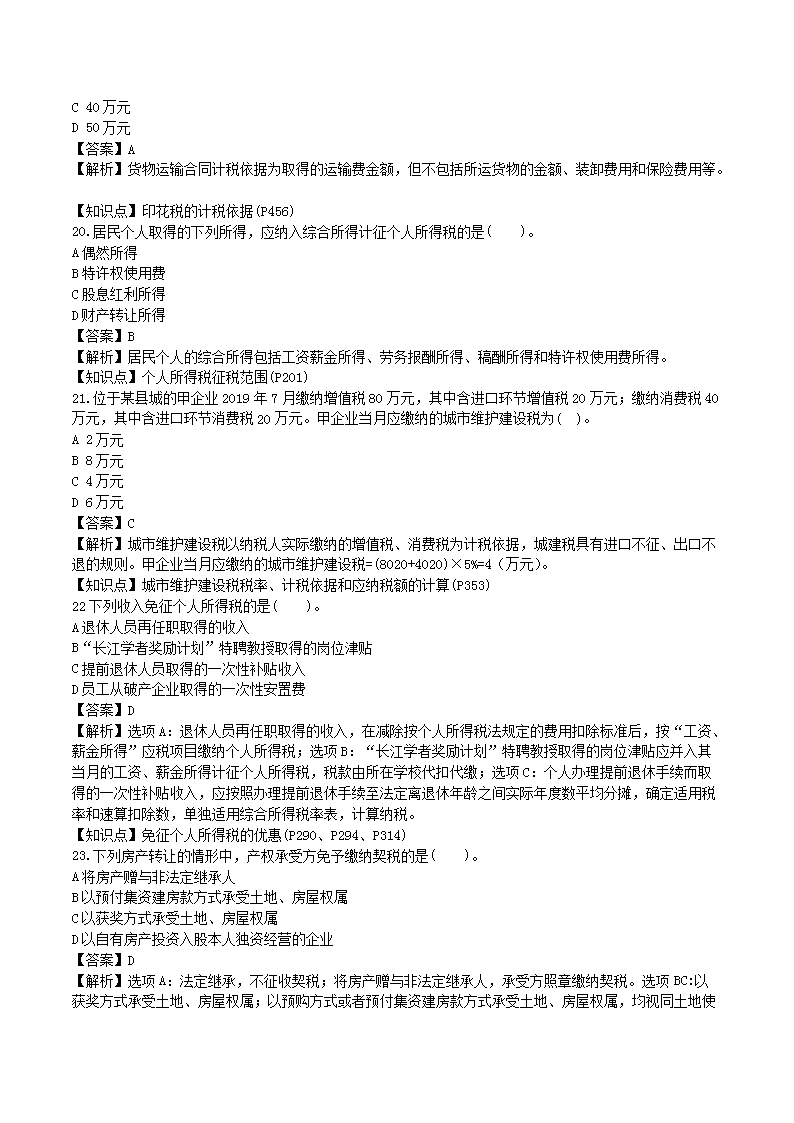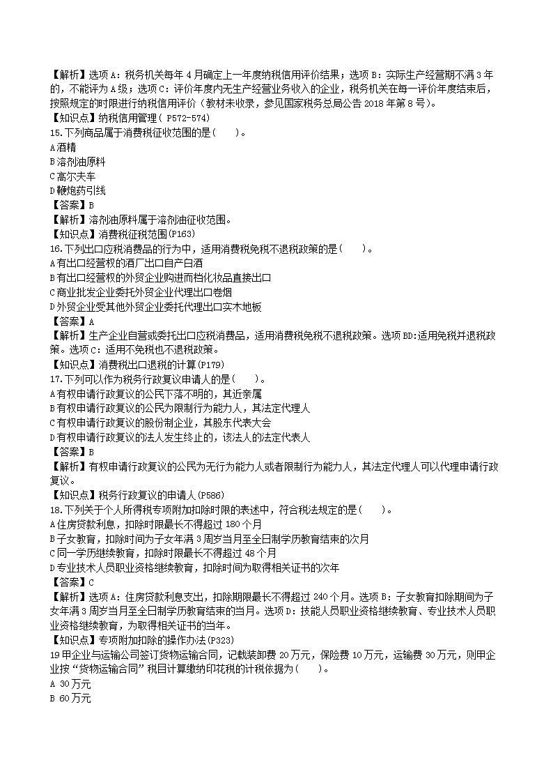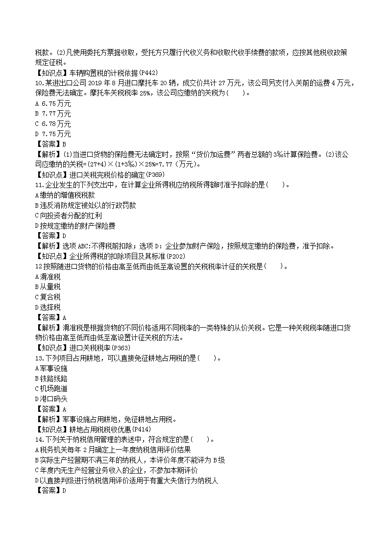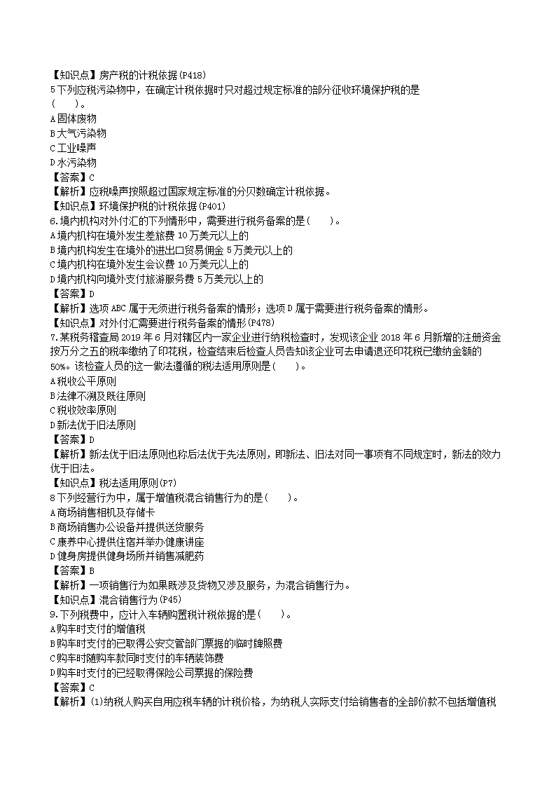 【文档名称】 2019年注册会计师税法考试真题及答案解析(Word版).doc