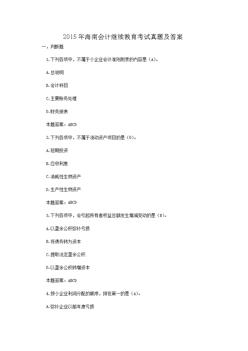 【文档名称】 2015年海南会计继续教育考试真题及答案(Word版).doc