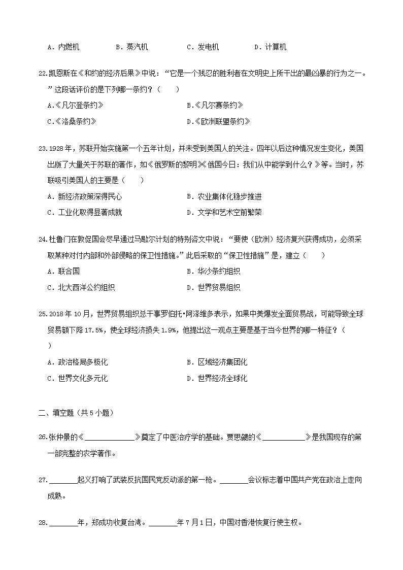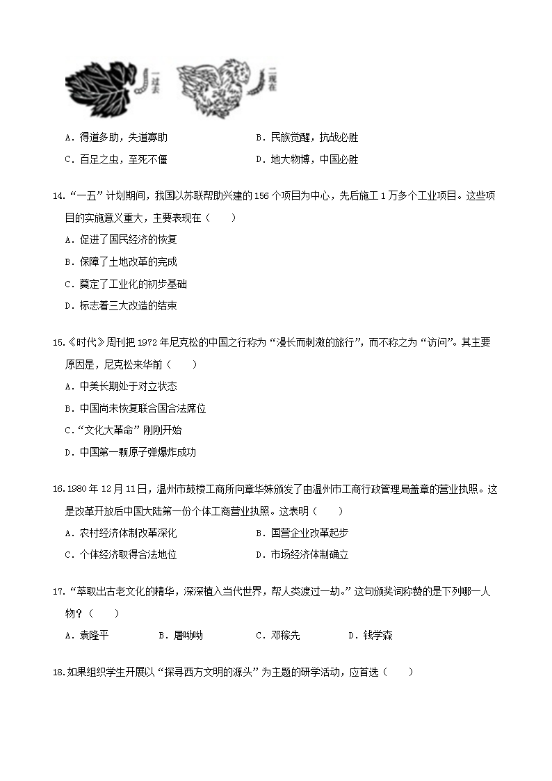 【文档预览】 无忧考网整理发布2019山东省聊城市中考历史真题及答案(Word版),前五页预览如下: