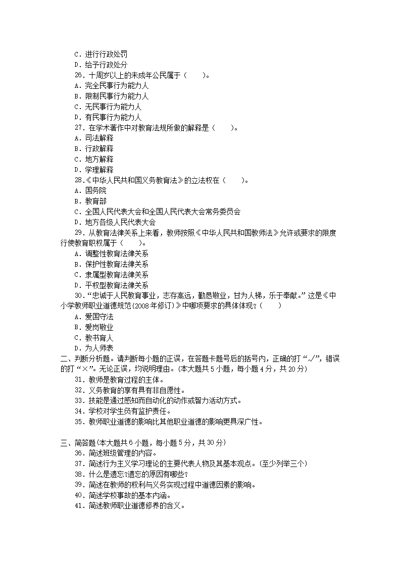 【文档名称】 2015四川特岗教师招聘考试教育公共基础真题(Word版).doc