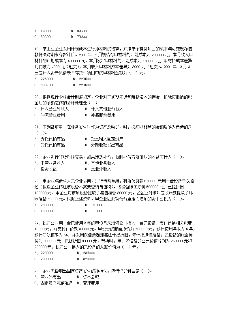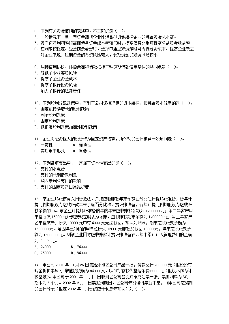 【文档名称】 2002年注册税务师考试财务与会计真题(Word版).doc