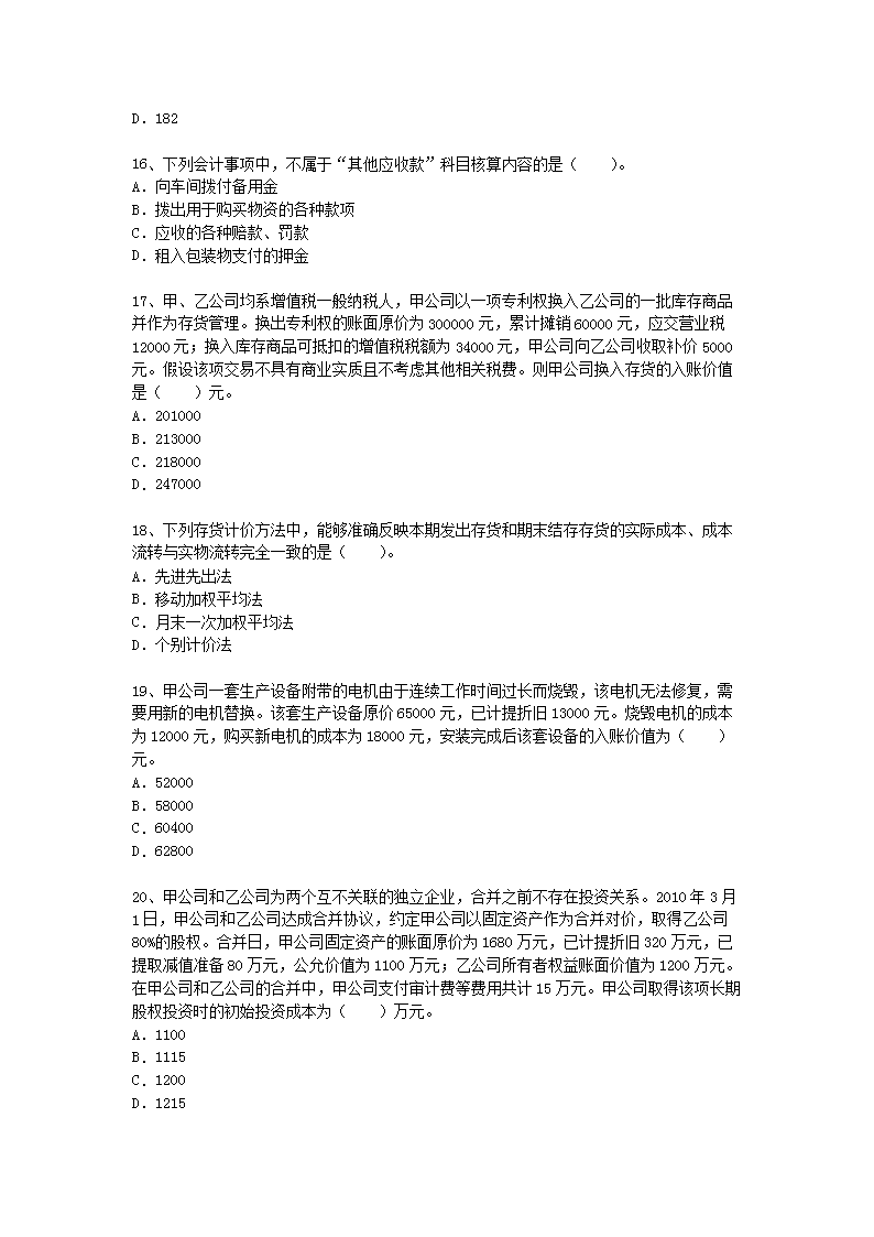 【文档预览】 无忧考网整理发布2011年注册税务师财务与会计真题(Word版),前五页预览如下: