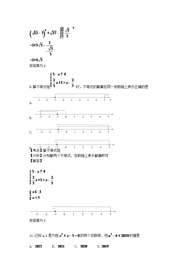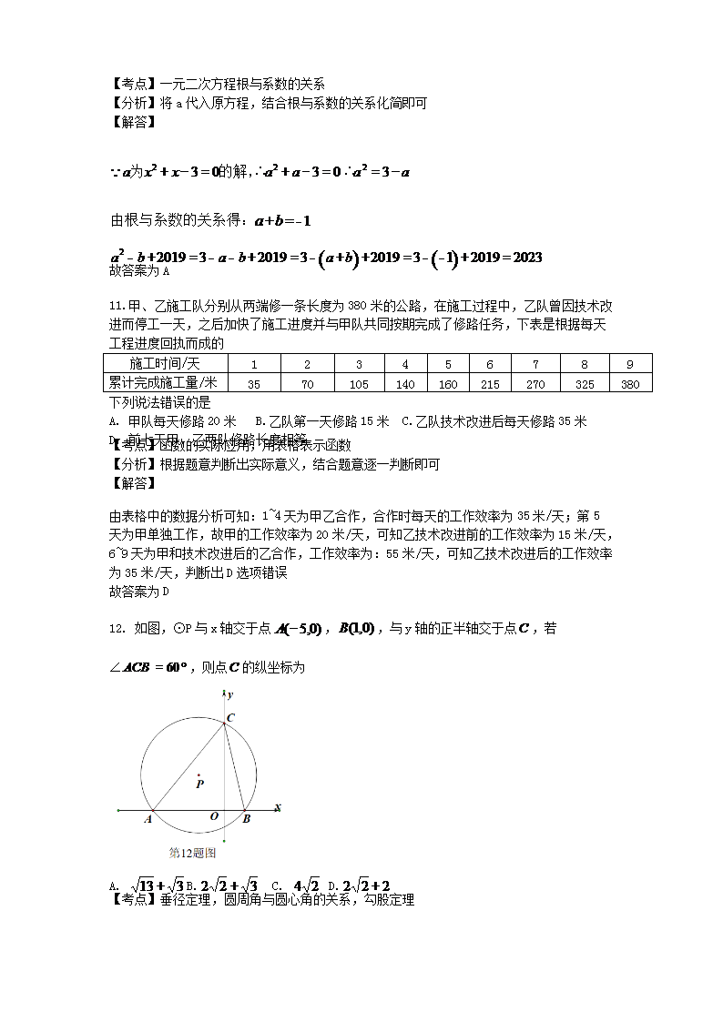 【文档名称】 2019山东省威海市中考数学真题及答案(Word版).doc