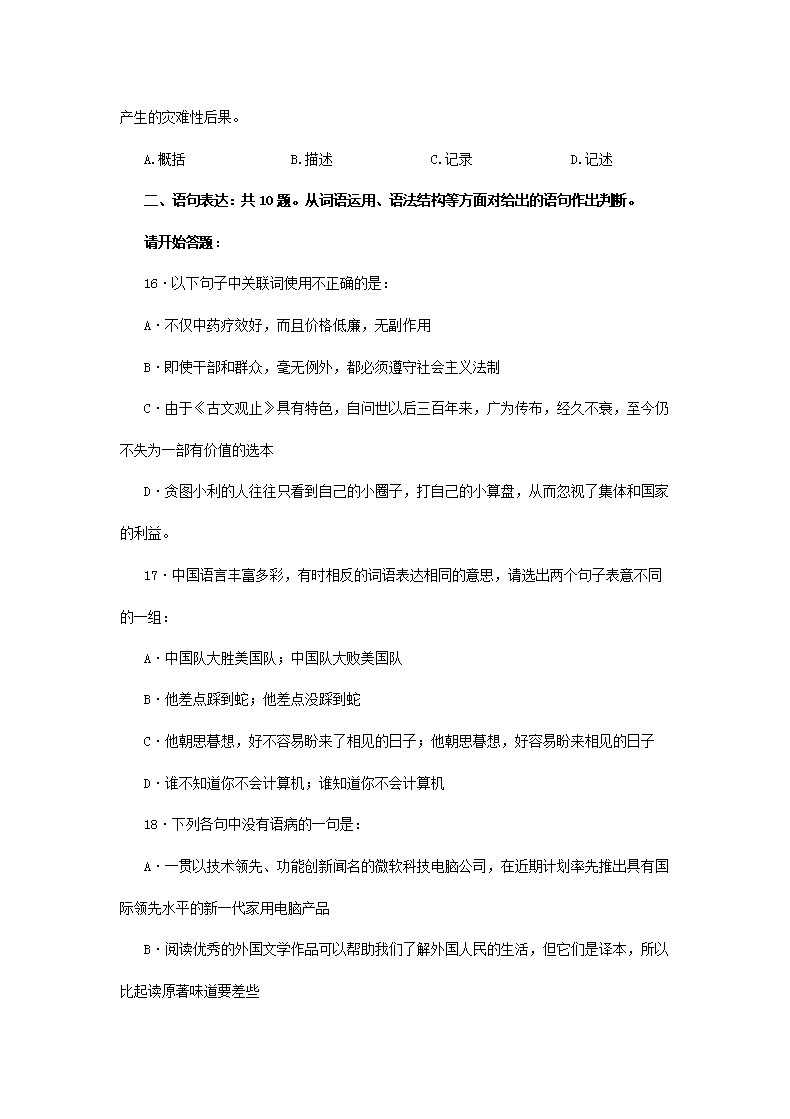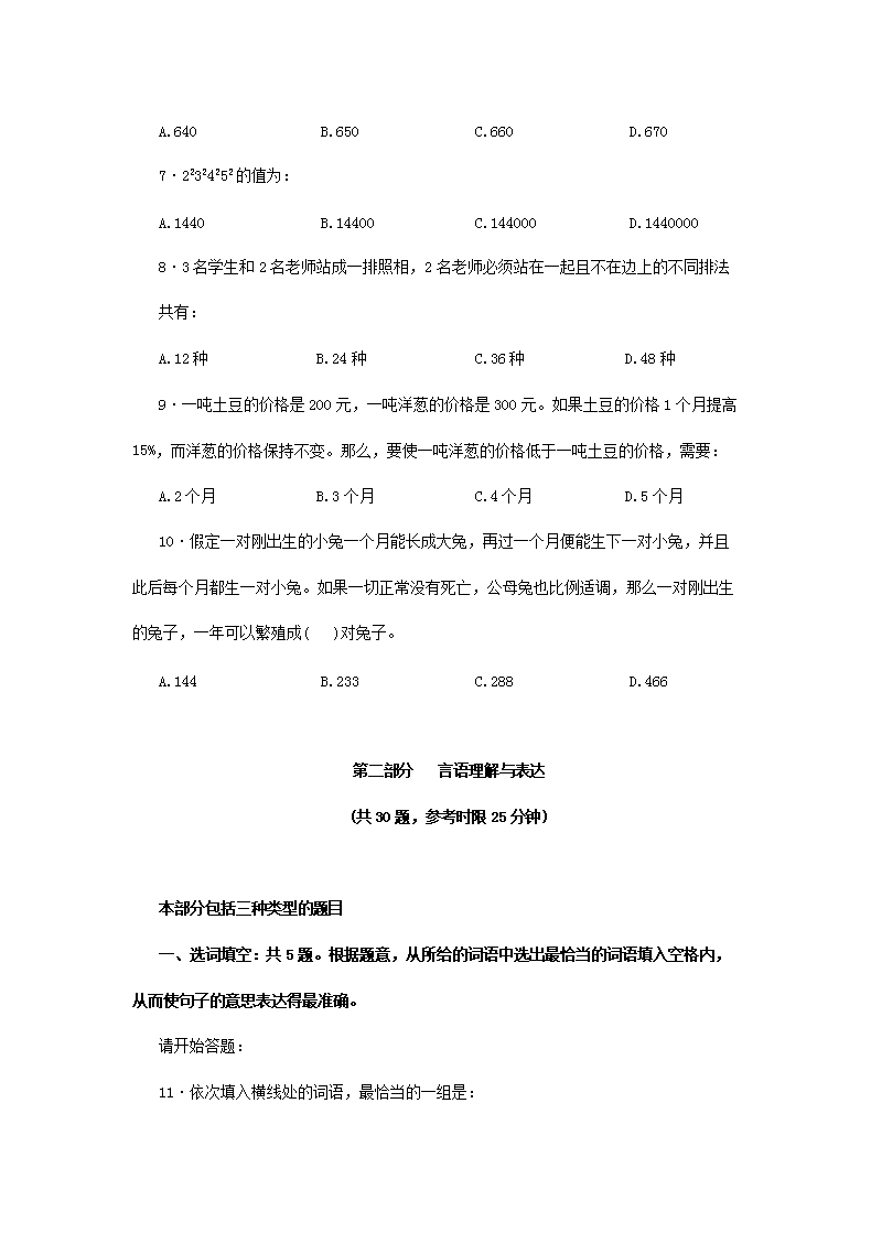 【文档名称】 2008年吉林公务员行测考试真题及答案乙级(Word版).doc