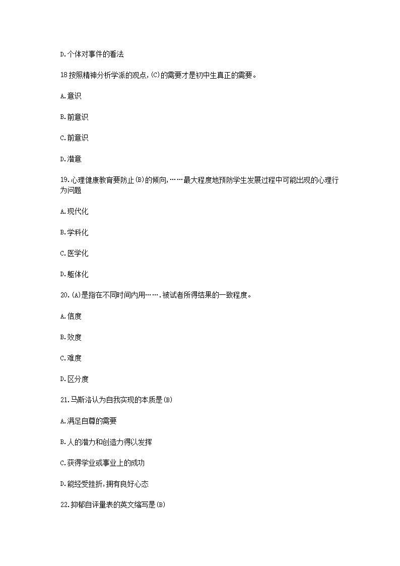【文档名称】 2019江西教师招聘考试初中心理健康学科专业知识真题及答案(Word版).doc