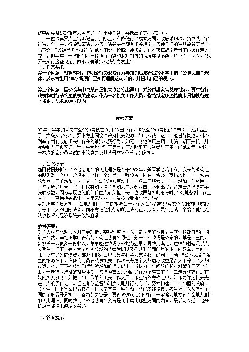 【文档名称】 2007年重庆公务员申论考试真题及答案(Word版).doc