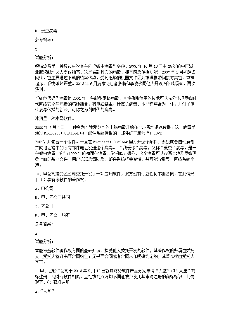 【文档预览】 无忧考网整理发布2014上半年软件设计师考试真题及答案-上午卷(Word版),前五页预览如下: