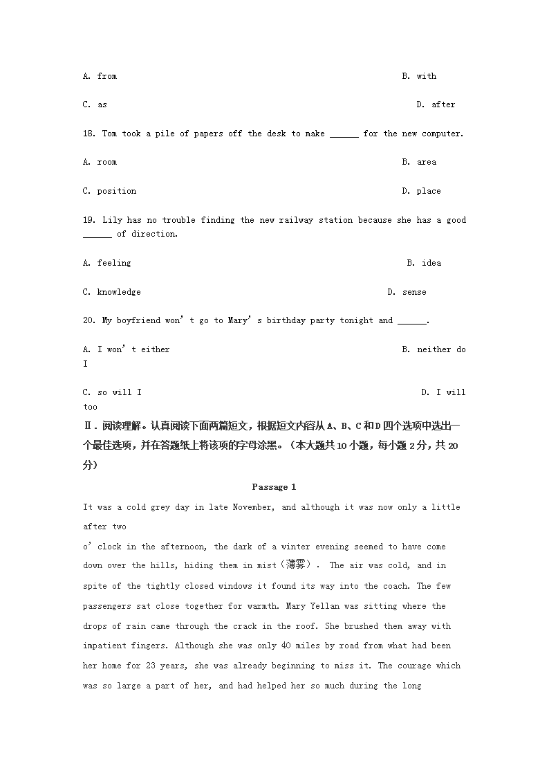 【文档名称】 全国2013年10月自学考试综合英语一试题(Word版).doc