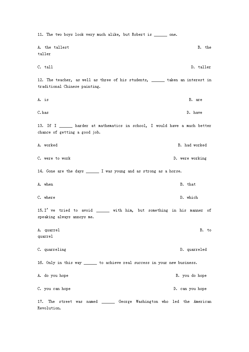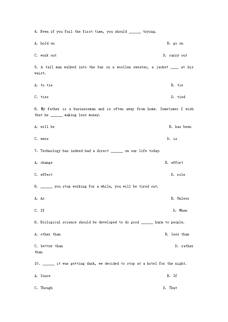 【文档预览】 无忧考网整理发布全国2013年10月自学考试综合英语一试题(Word版),前五页预览如下: