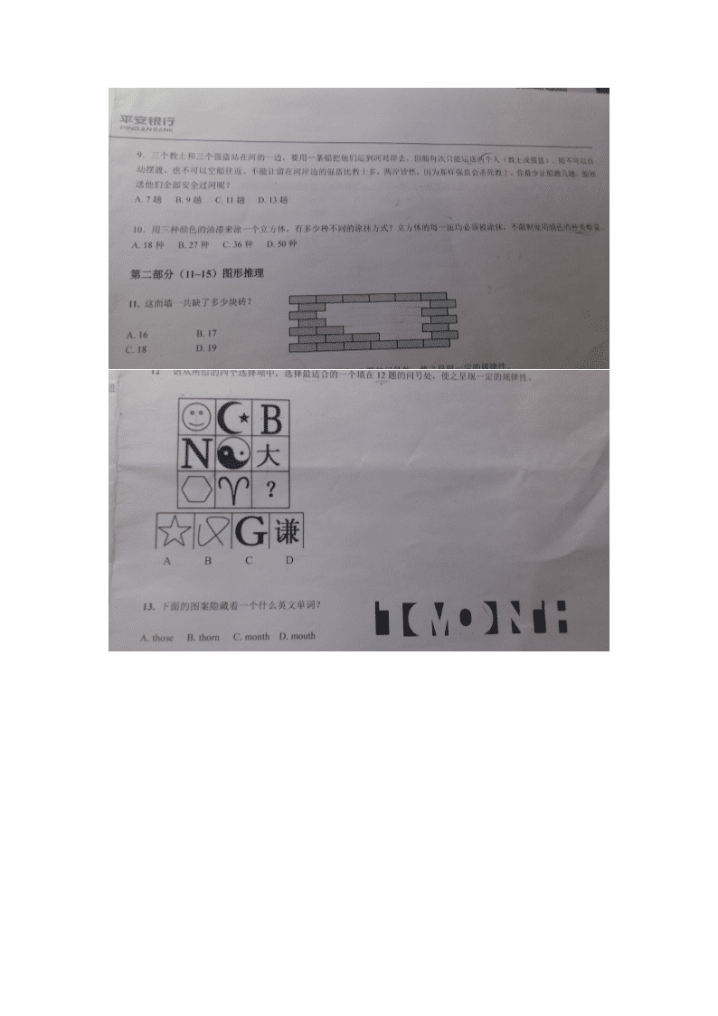 【文档名称】 2014年平安银行校园招聘笔试试卷A卷(图片版).doc