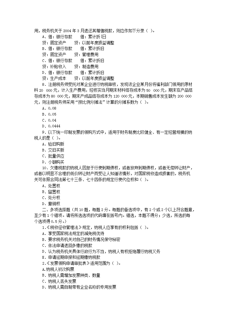 【文档预览】 无忧考网整理发布2005年注册税务师税务代理实务真题及答案(Word版),前五页预览如下:
