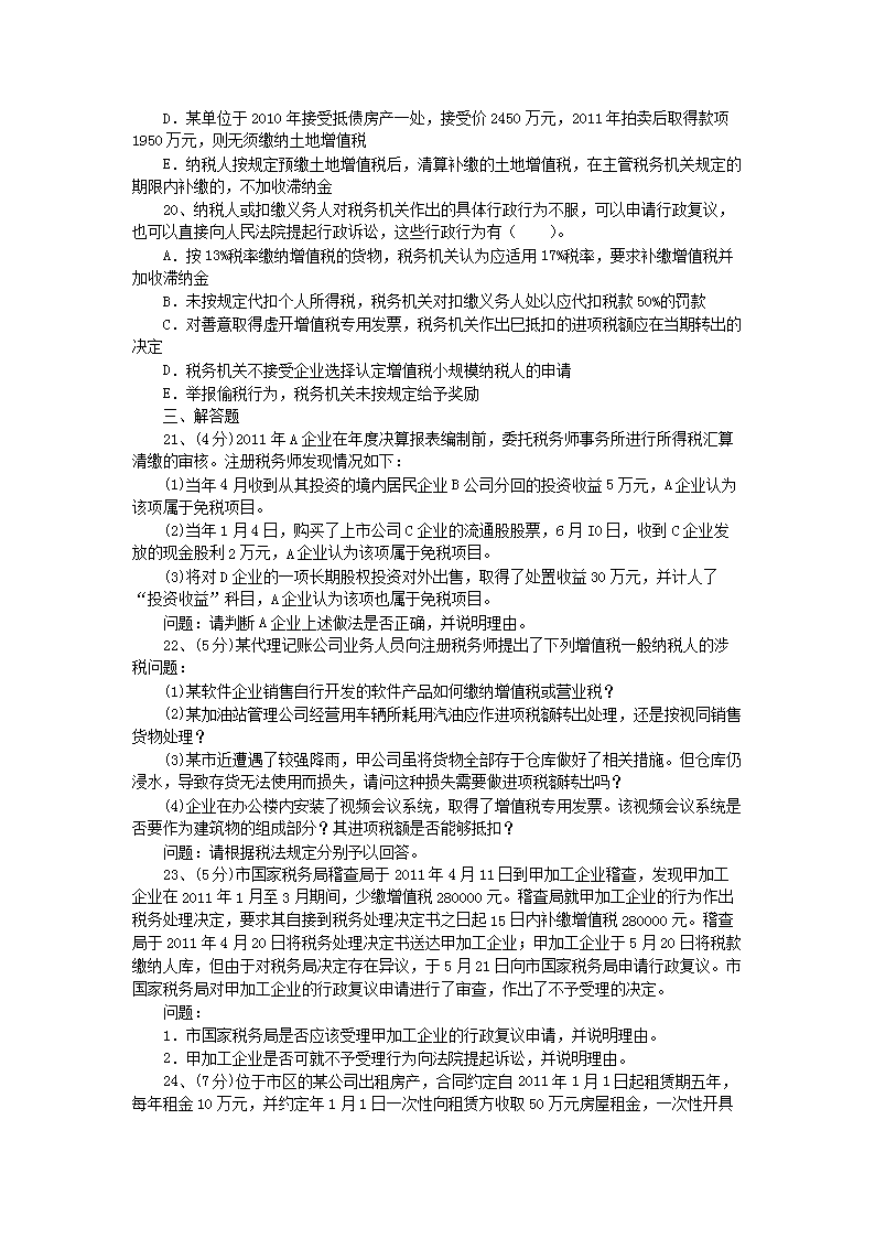 【文档预览】 无忧考网整理发布2012年注册税务师考试税务代理实务真题(Word版),前五页预览如下:
